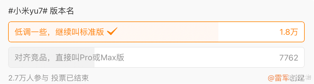 其中1.7万人选择了“低调一些,继续叫标准版”,另有7000余人倾向于“对齐竞品,直接叫Pro或Max版”。