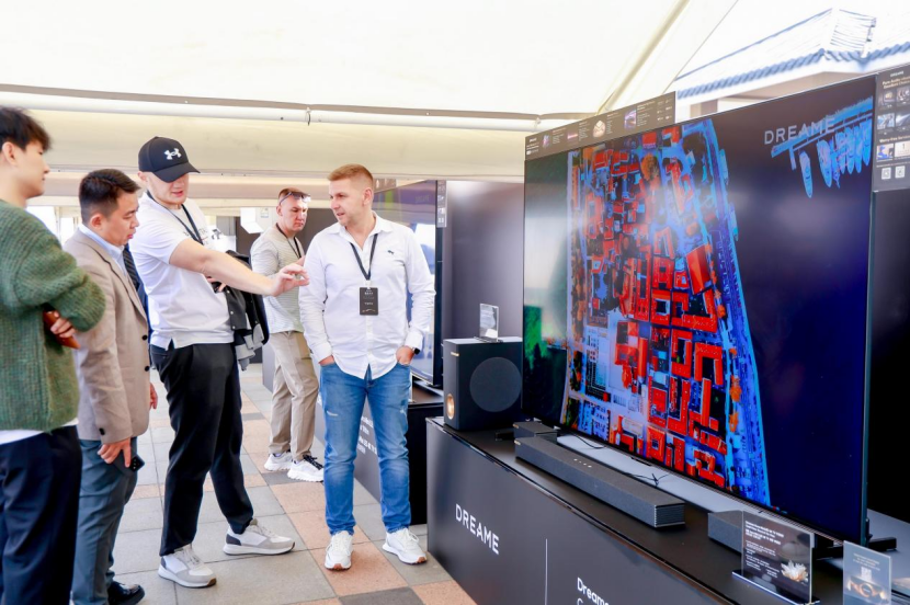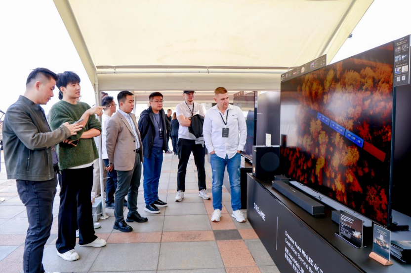值得一提的是,在户外现场复杂的声学环境中,即便周围此起彼伏的嘈杂声,S100系列内置的完整Soundbar系统,搭载11个发声单元,功率峰值高达70W,配合杜比全景声技术,依然能确保播放的背景音乐清晰可闻,悦耳且透彻,为与会者营造了一个不受外界干扰的沉浸式视听空间。