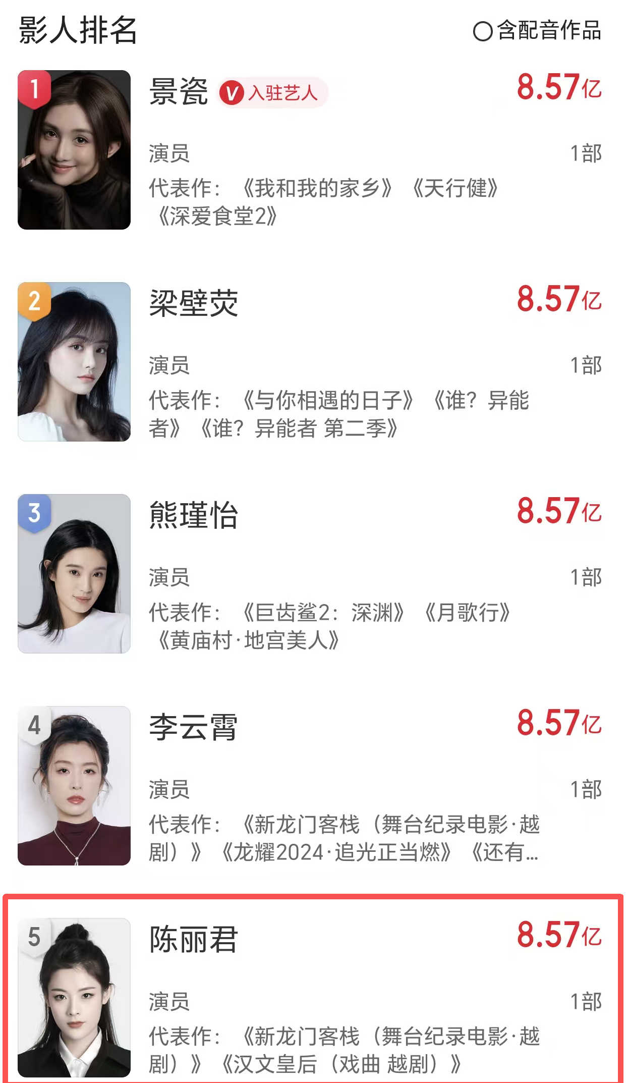 在我看来,陈丽君甚至比原定女主更为适合这个角色,而她初次在大荧幕上亮相,就凭借《镖人》,和另外四位女演员并列第一,成为中国武侠票房最高的女演员之一,可谓开局即巅峰,期待陈丽君再次大显身手,惊艳众人的那天!