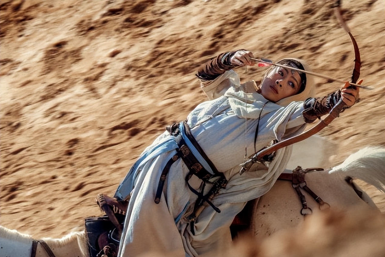 不仅如此,她还贡献了“马背90度下腰射箭”“沙暴三箭连发”等高难度镜头,动作标准自然,看起来还真有种大漠女王的气势了。