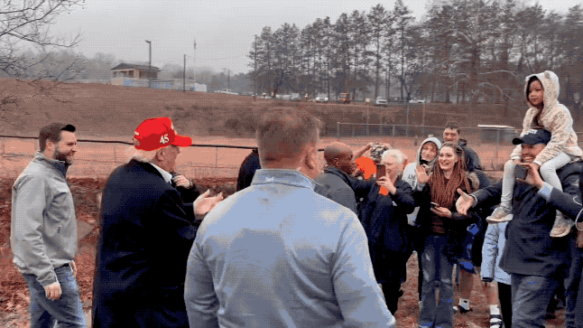 特朗普邀买人心:视察美国毒火车脱轨事发地!美国前总统特朗普现身火车脱轨的俄亥俄州东巴勒斯坦镇。特朗普一边分发红色的 MA