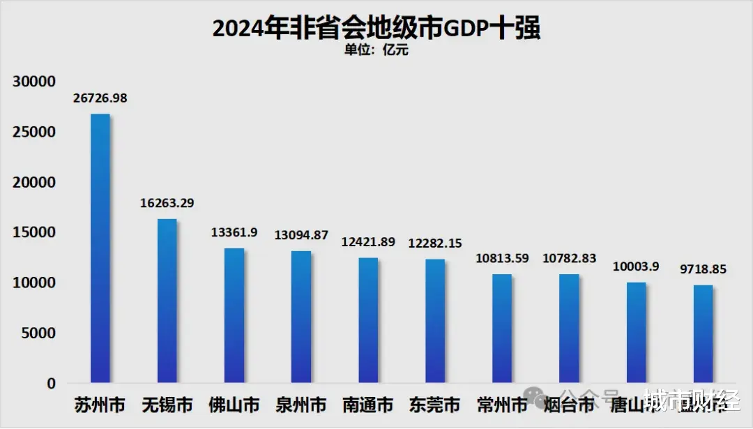 根据各城市统计局公布的2024年GDP数据,目前十强非省会地级市依次为: