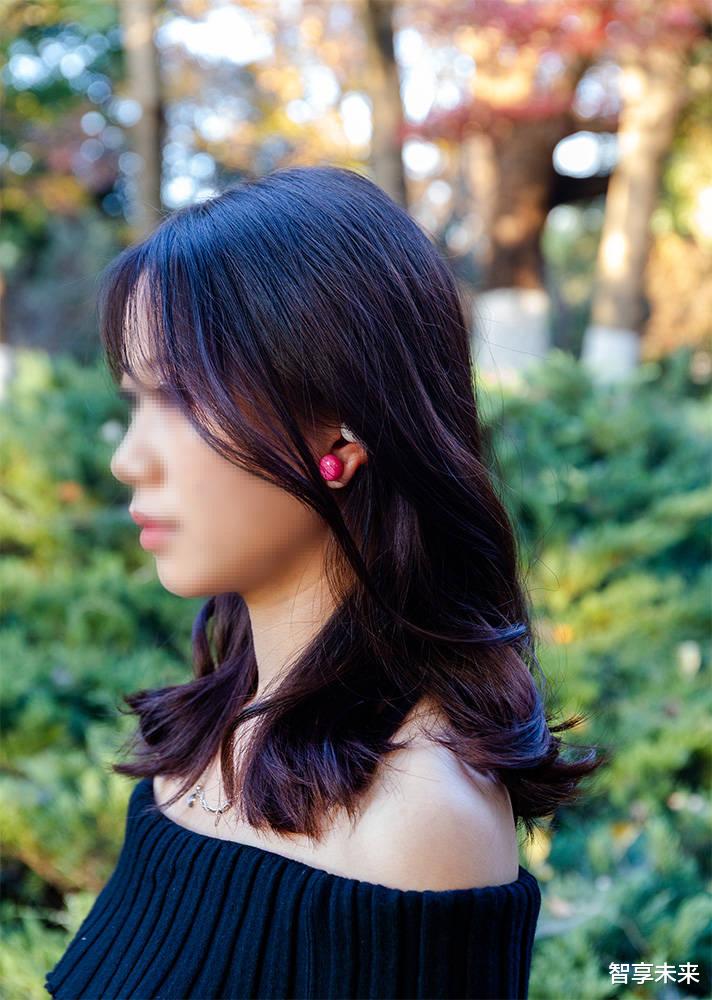 虹觅 Air2耳夹式蓝牙耳机的设计,独具匠心,处处体现对细节的把握。耳机采用轻量化设计,单只耳机重约4.5g,完全无负重感。后位的电池,被做成了更加贴后而后轮廓的弧面设计,而耳后提供更科学的支撑,减少了佩戴的异物感,佩戴起
