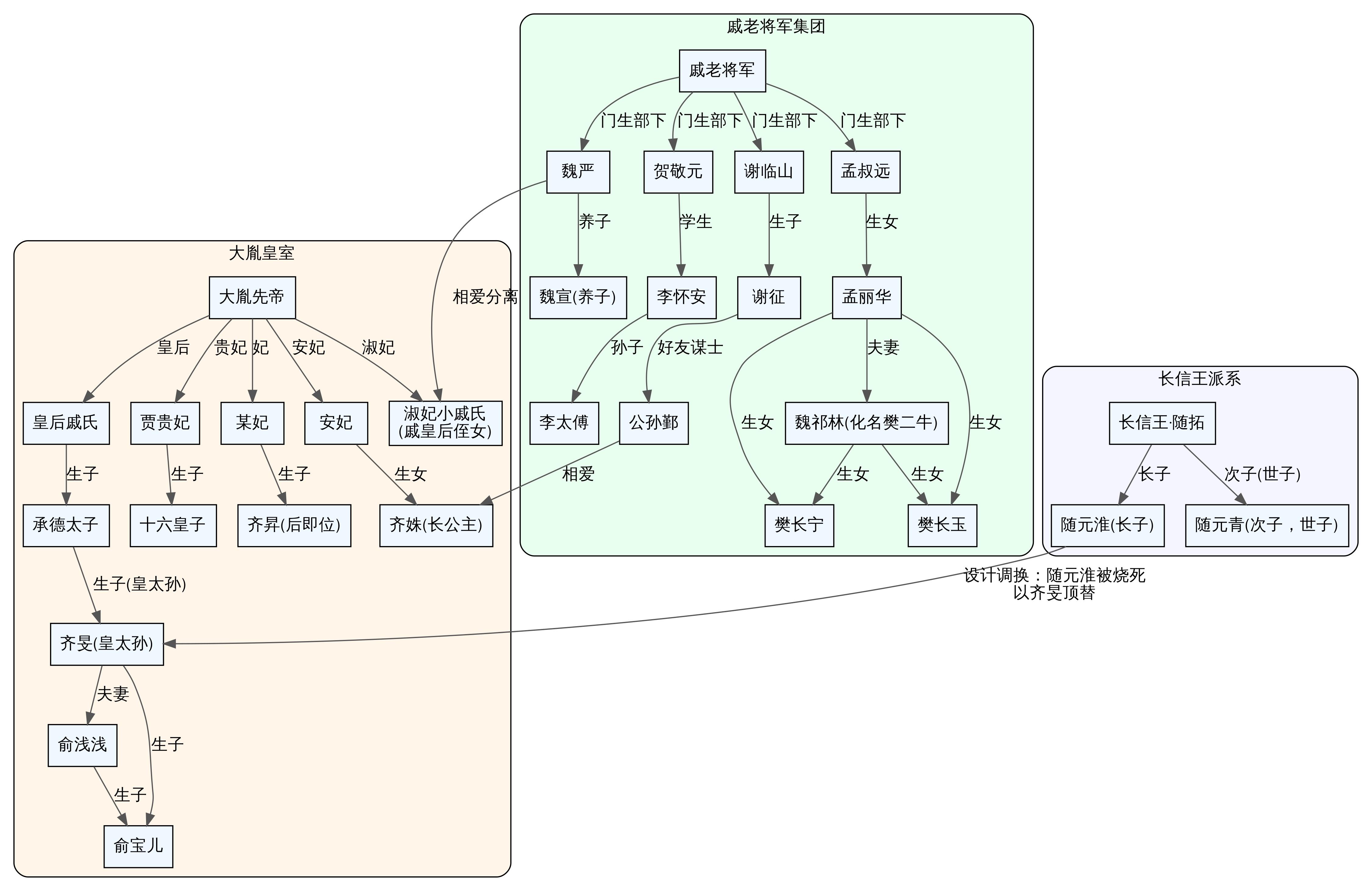 长子随元淮:被太子妃设计烧死,以皇太孙齐旻调换。齐旻娶俞浅浅,生俞宝儿