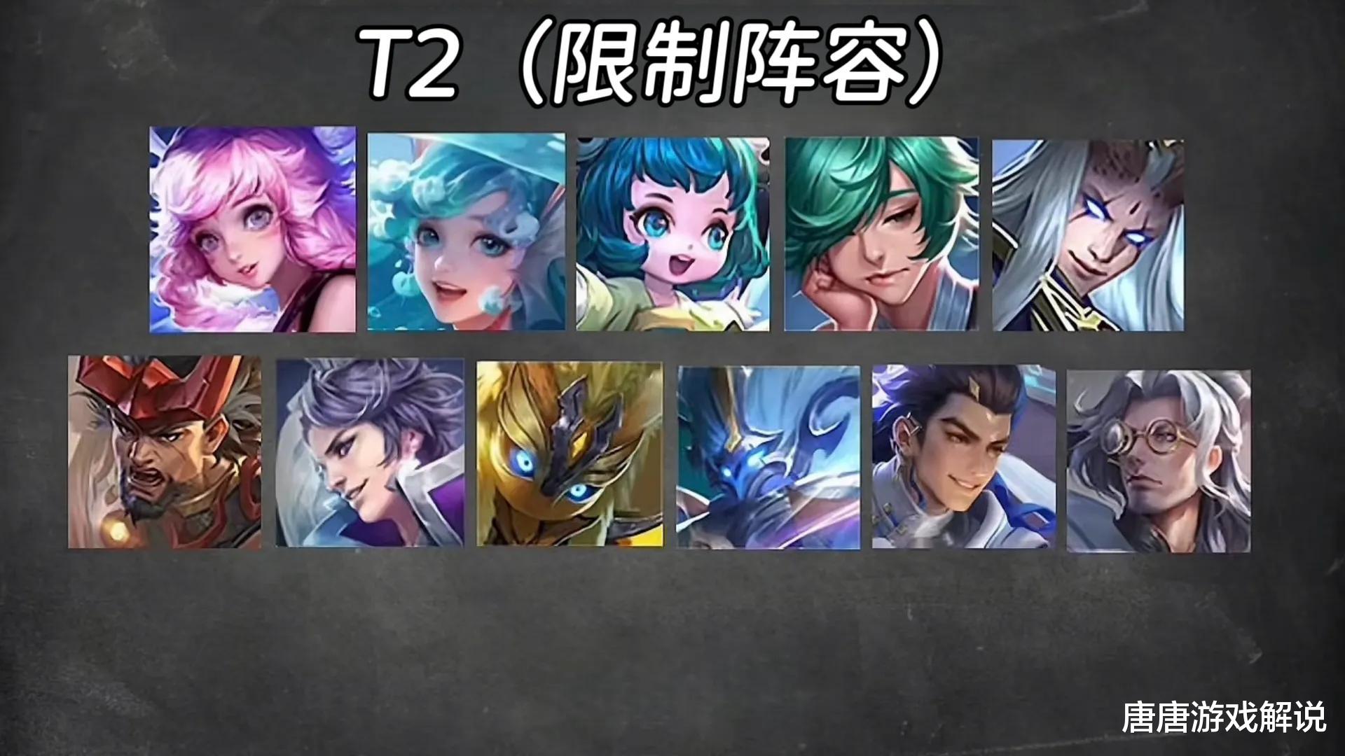 T2强度的英雄数量较多,算是经常能看到出场的英雄,作为反制位拿出来会很强,他们的问题是受阵容限制太严重。