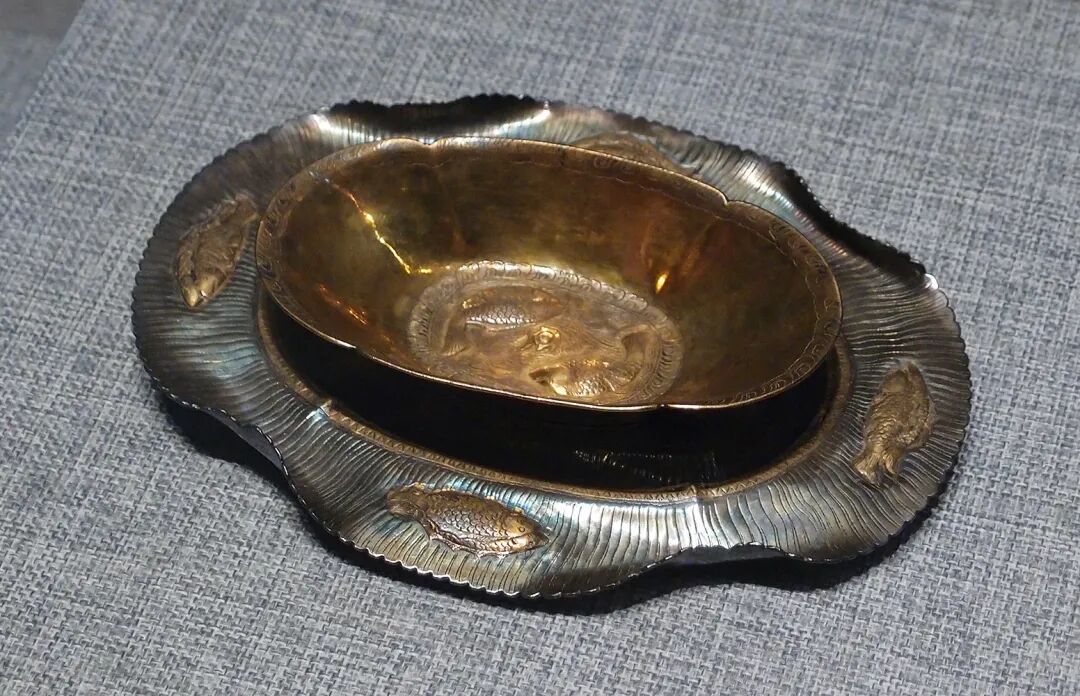 双鱼纹海棠花形金盏托 唐洛阳博物馆