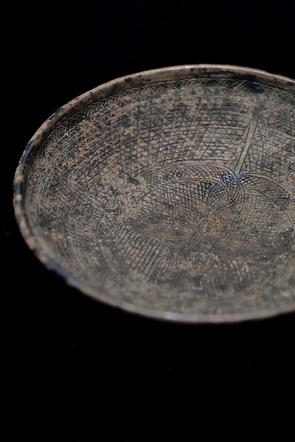 这些纵横交错的密集条纹是作何之用呢?原来,吴氏生活的年代正是茶圣陆羽著成《茶经》及煮茶法兴盛的时期,点茶法也逐渐开始兴起并在唐末最终取代煮茶法成为主流,但不论煮茶法还是点茶法,都需要事先将茶饼研磨成茶末才能用来饮用。也就是说,这些纵横交错的密集沟槽纹路是为了增加碾磨摩擦力,以便更好地将茶饼研磨成茶末。