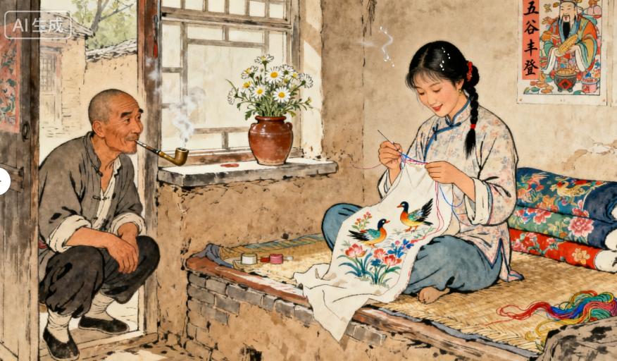 春杏嫁过来三年,丈夫栓柱是个老实巴交的庄稼汉,为人勤快,待春杏更是疼惜。两口子靠着几亩薄田,虽不富裕,却也把小日子过得有滋有味。春杏手巧,会绣些花鸟鱼虫,逢年过节时绣个荷包、枕套,拿到镇上能换些碎银子,补贴家用。栓柱常说:“俺这辈子最大的福气,就是娶了春杏你这么好的媳妇。” 春杏听了,总是红着脸嗔他:“就你会说好听的。”