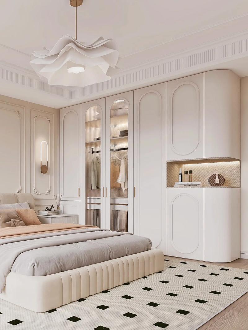 小户型记住"上浅下深" 柜门用米白/奶茶色 柜体选深灰橡木纹 高级感瞬间拉满 预算不够可以这样做👇 玻璃柜门换成灰玻 开放格挂米白纱帘 这样既防尘又不显乱