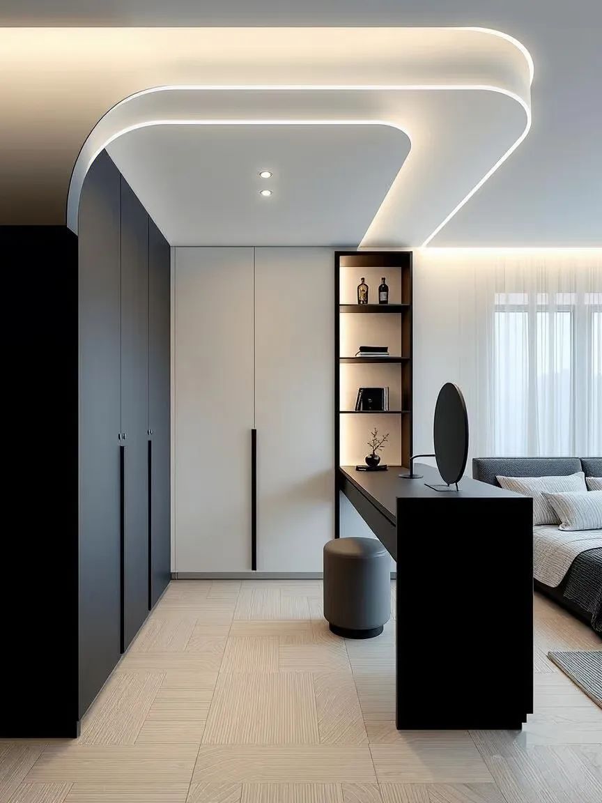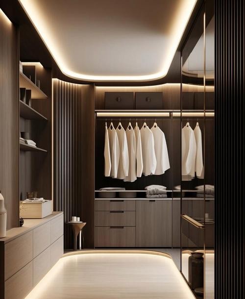 1、基础照明:在衣帽间顶部安装吊灯或嵌入式筒灯,提供均匀的基础光线。