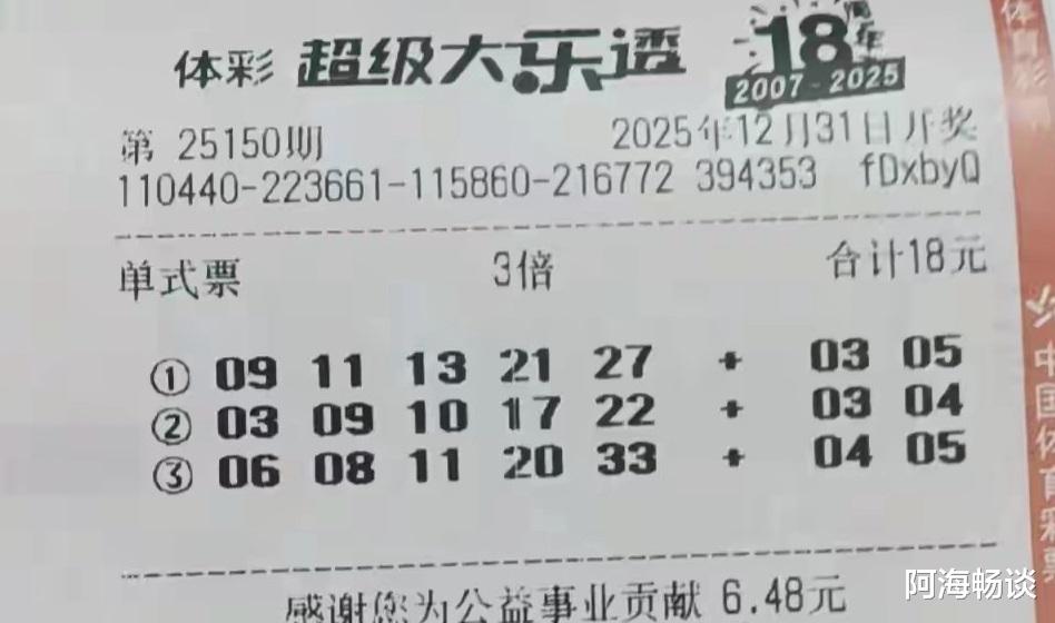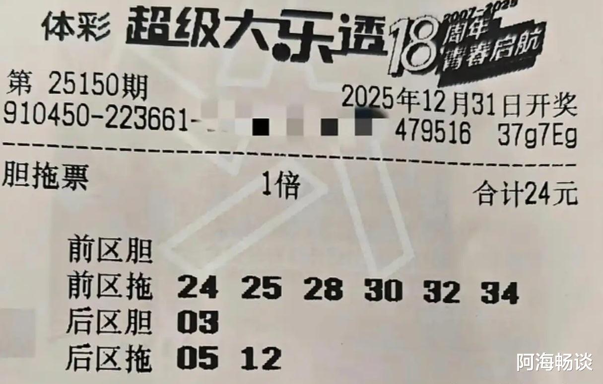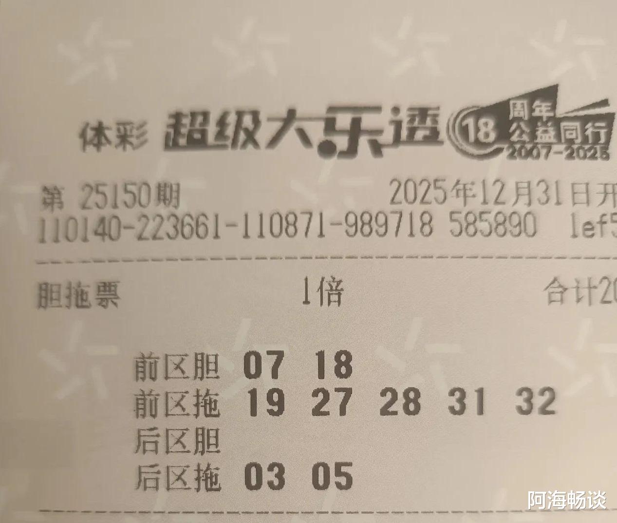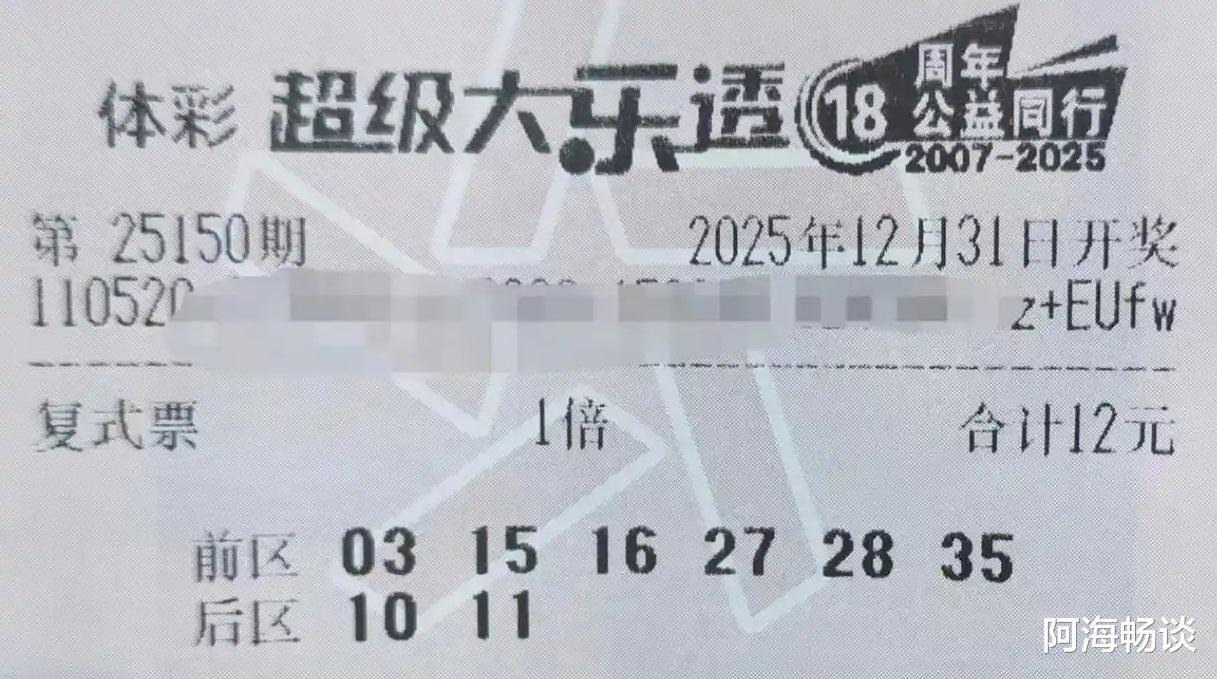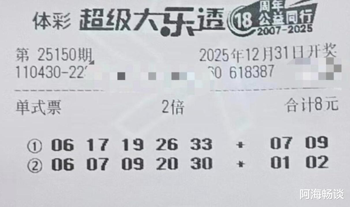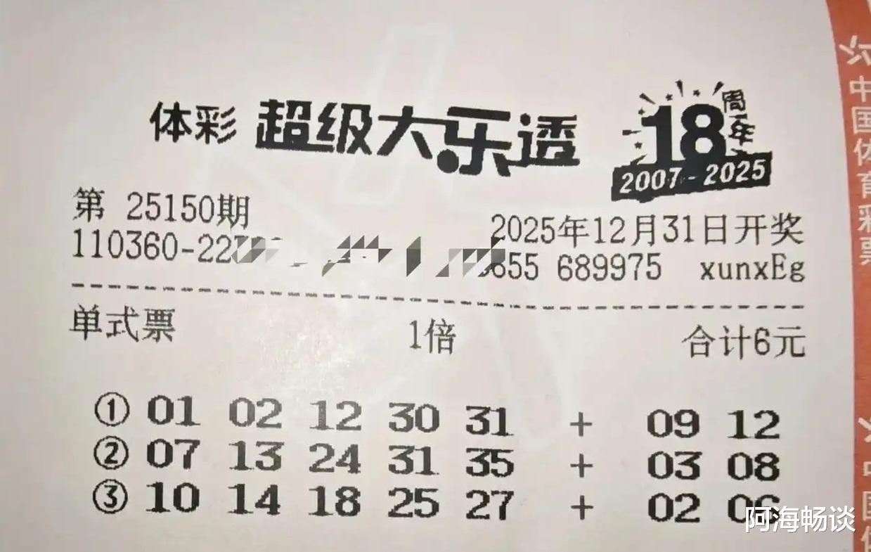 大家好!今天是2025年12月31日,农历十一月十二,星期三。今天是2025年最后一天,今晚也迎来今年大乐透的收官之期。在这里提前祝愿大家新年快乐,好运多多!今晚开奖的是大乐透第25150期,不少朋友已经晒出了手中的票面,期待收获一份年终幸运。先来回顾上期情况:第25149期全国共开出1注一等奖,花落福建,可谓惊喜压轴。二等奖则开出77注,其中16注采用追加投注,单注基本奖金220,057元,追加奖金176,045元。了解完上期开奖信息,接下来,就让我们一起欣赏本期的精彩晒票吧!