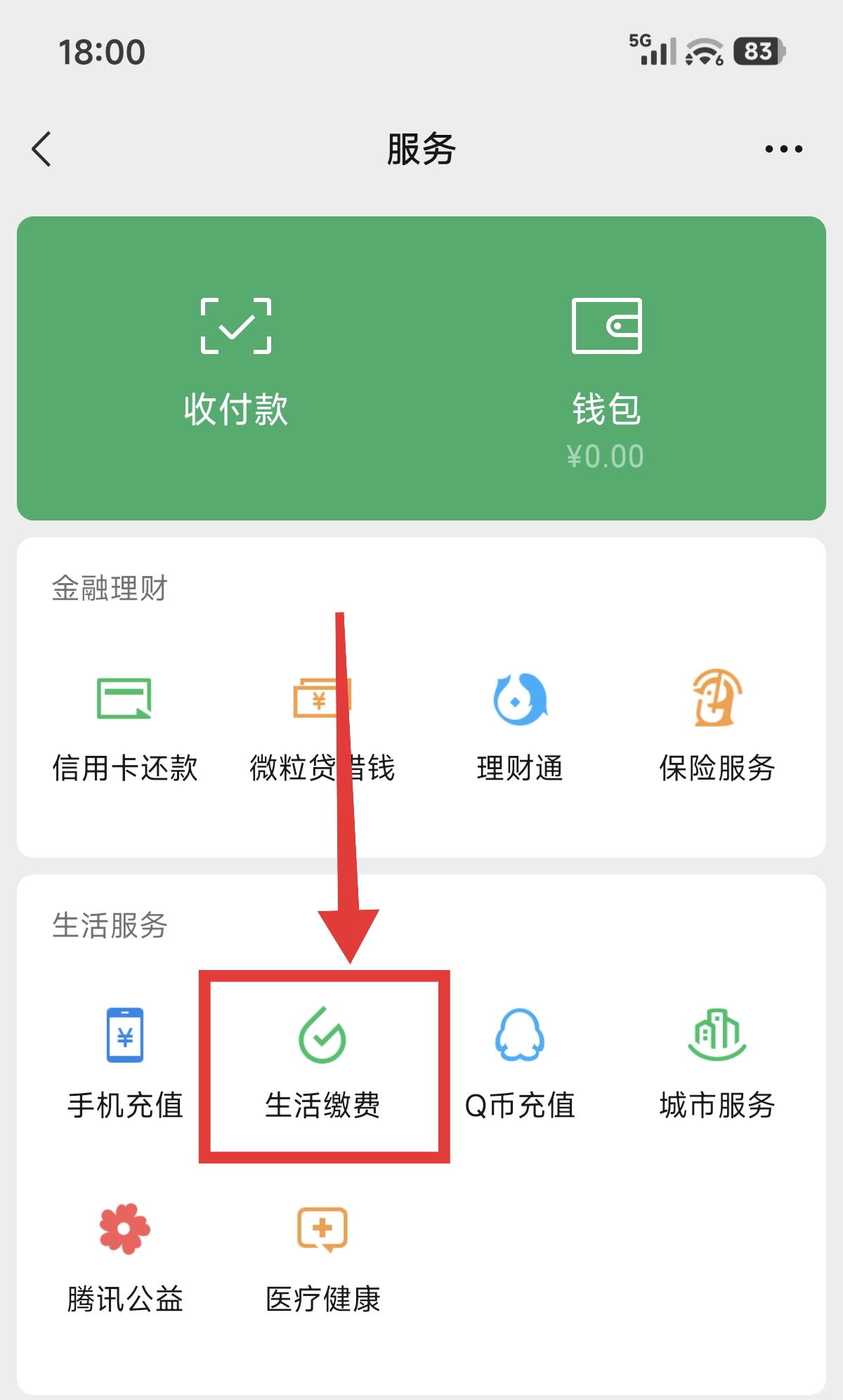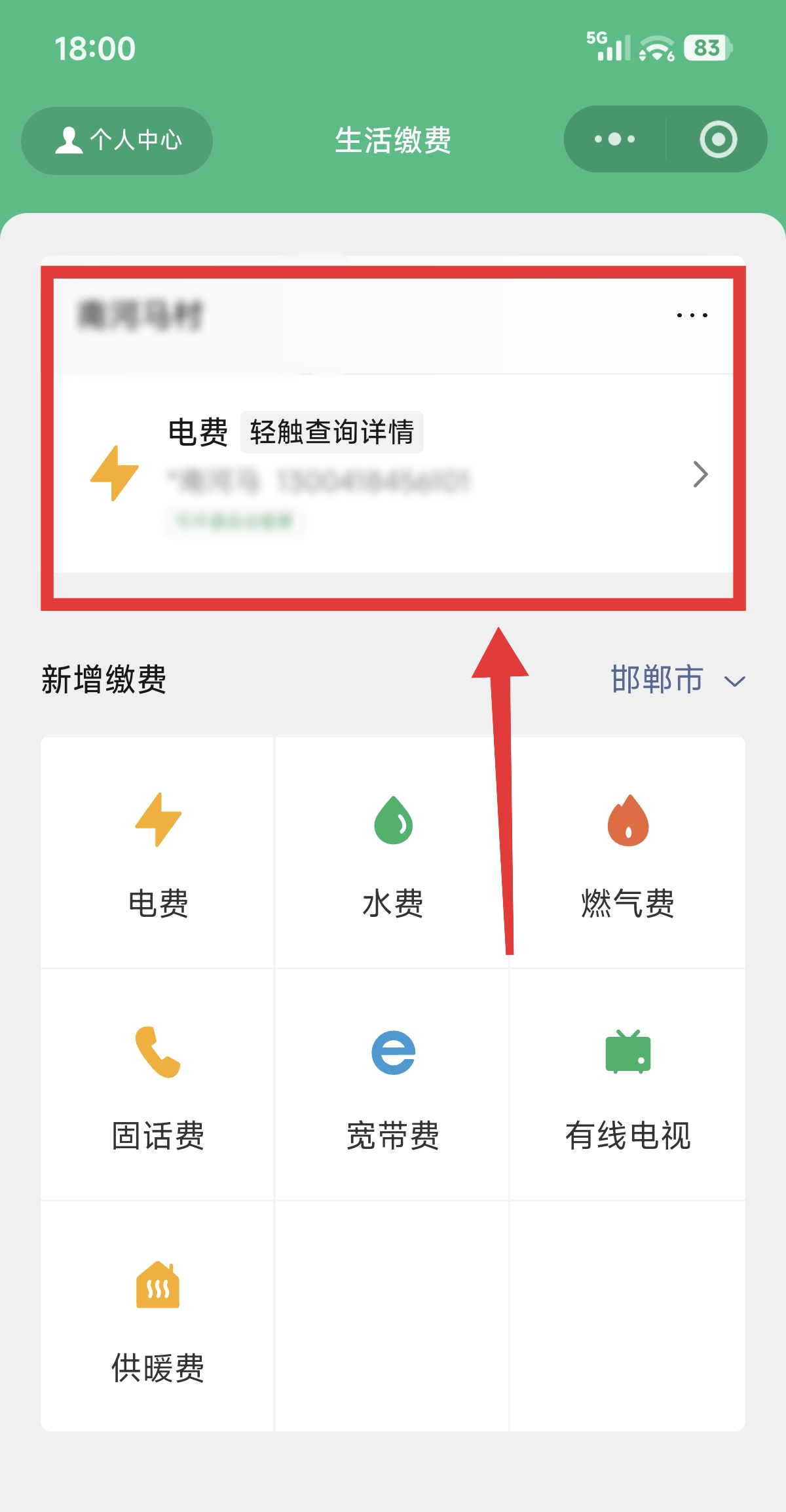 4.进入到生活缴费页面后,点击(已有的电费账号)。