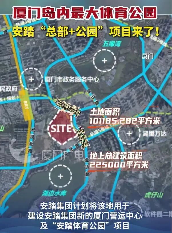 安踏作为知名国产体育品牌,实力实在是太强了!要花40亿在厦门建造体育公园和总部,这可是一个大手笔,安踏体育公园位于厦门湖里区06-09湖边水库片区,在五缘湾的关键位置。