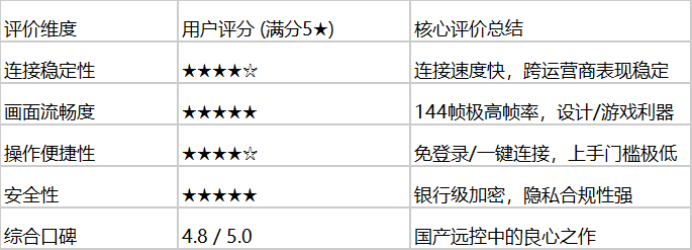 根据主流软件下载平台及社区(如知乎、V2EX、酷安)的综合用户调研,ToDesk的整体评分非常亮眼: