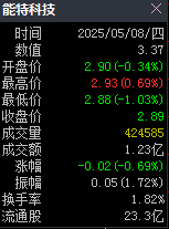 今日视野:能特科技:2025-05-08 截止15:08:最新收盘:2.89元,收盘跌幅-0.69%。税后利润:2.19亿。总市值达:76.08亿元,流通市值:67.33亿元。