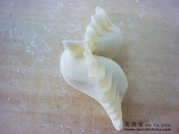 中间部位捏出头部,鸽子饺就做好了,不是太像,有点神似。