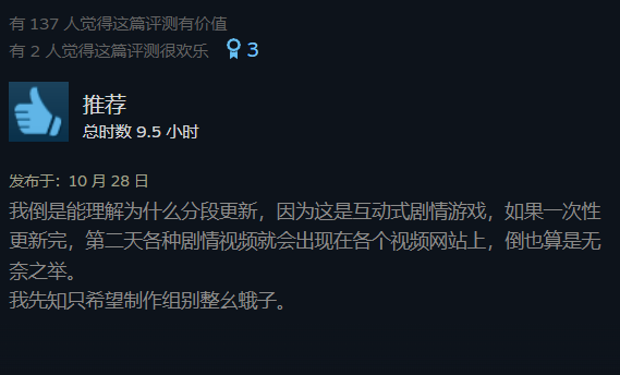 从游戏表现来看,剧集般的观感与其分集发行的模式的确适配,让玩家在游戏体验过程中感受到“追剧”的乐趣,为游戏带来持续性的话题热度。与此同时,这种发售模式也是一把双刃剑,极其需要团队能力为之兜底,否则由此引发的玩家不满只会让游戏口碑崩塌。