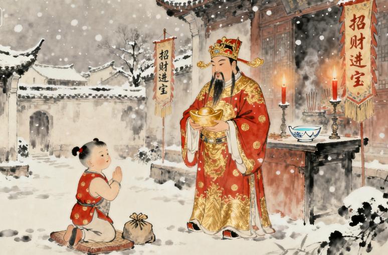 这年腊月,天格外冷,寒风像刀子似的刮在脸上。阿福给娘抓完药,路过镇上的财神庙,想着快过年了,便进去拜了拜。庙不大,财神像却塑得栩栩如生,金袍玉带,手持元宝,眼神慈祥又威严。阿福恭恭敬敬地磕了三个头,心里念叨:“财神爷,求您保佑我娘的病能好起来,也保佑我能多挣点钱,早日还清家里的旧债。”