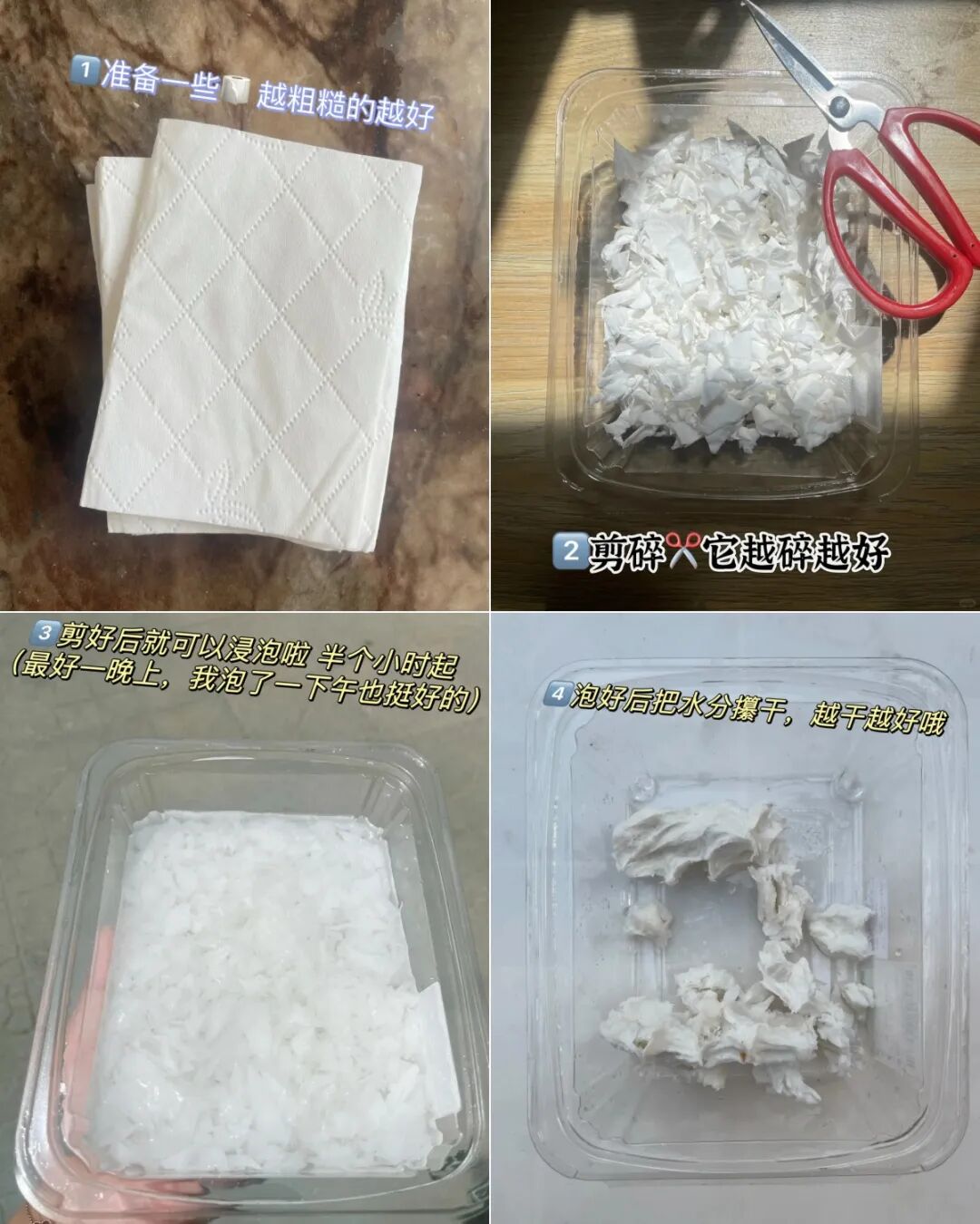 纸浆画的改造方法超级简单,把废纸剪碎,然后用水浸泡至少半个小时,等废纸泡软之后,把水份攥干。
