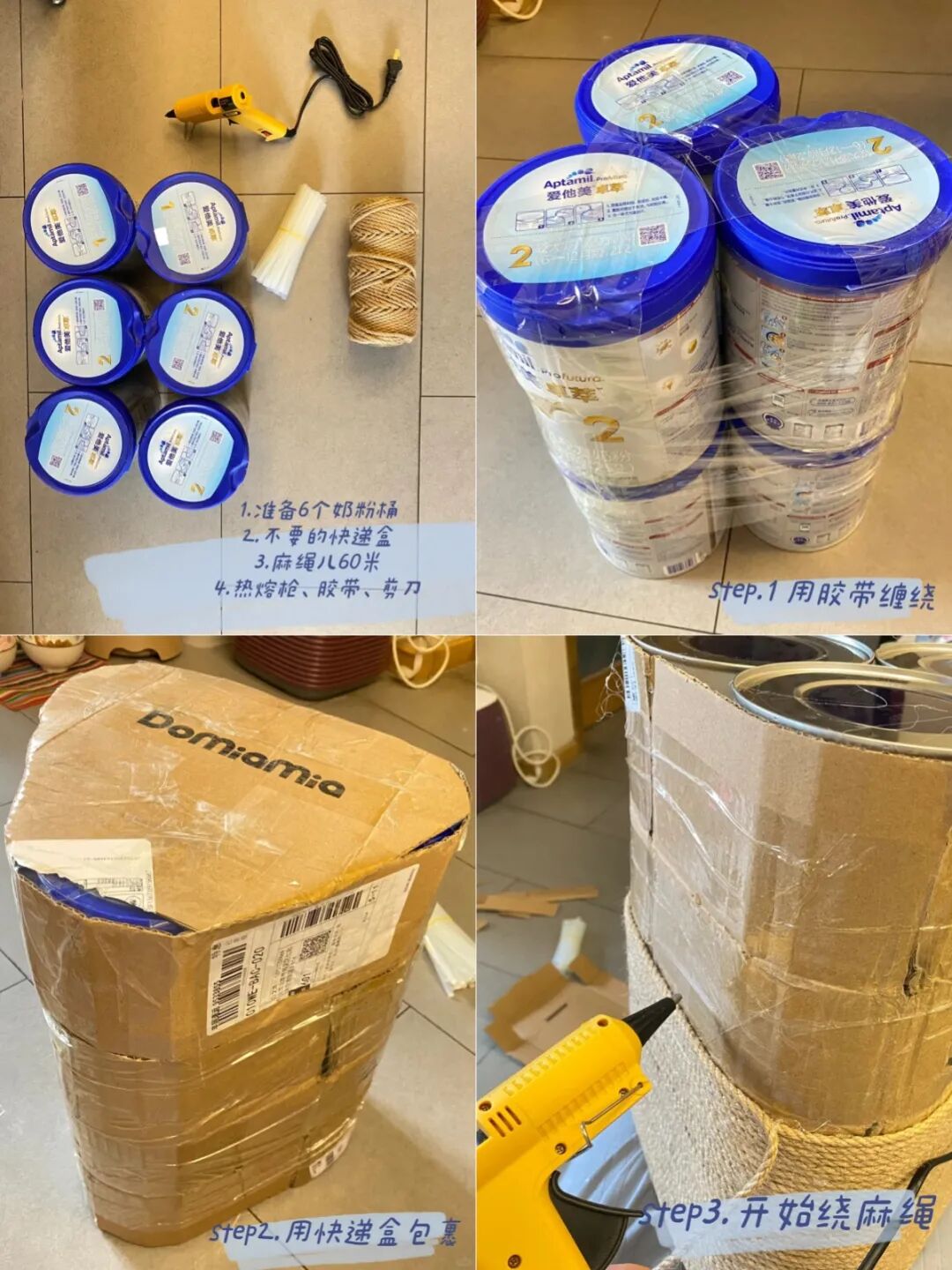 家里有孩子的,奶粉罐肯定堆了一大堆。可以学网友把奶粉罐改造成有收纳功能的小茶桌。