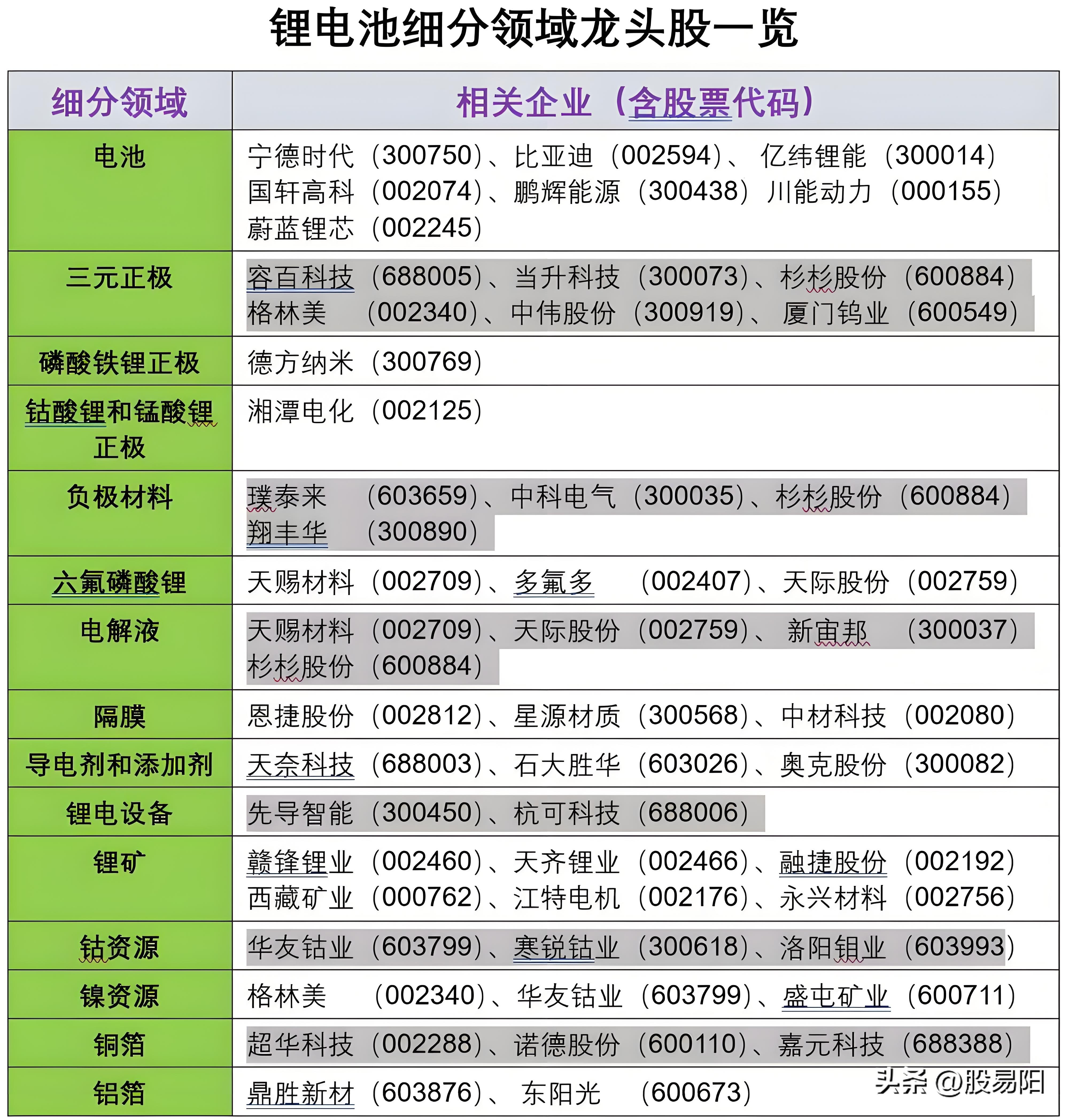 A股电池板块核心个股大梳理:
