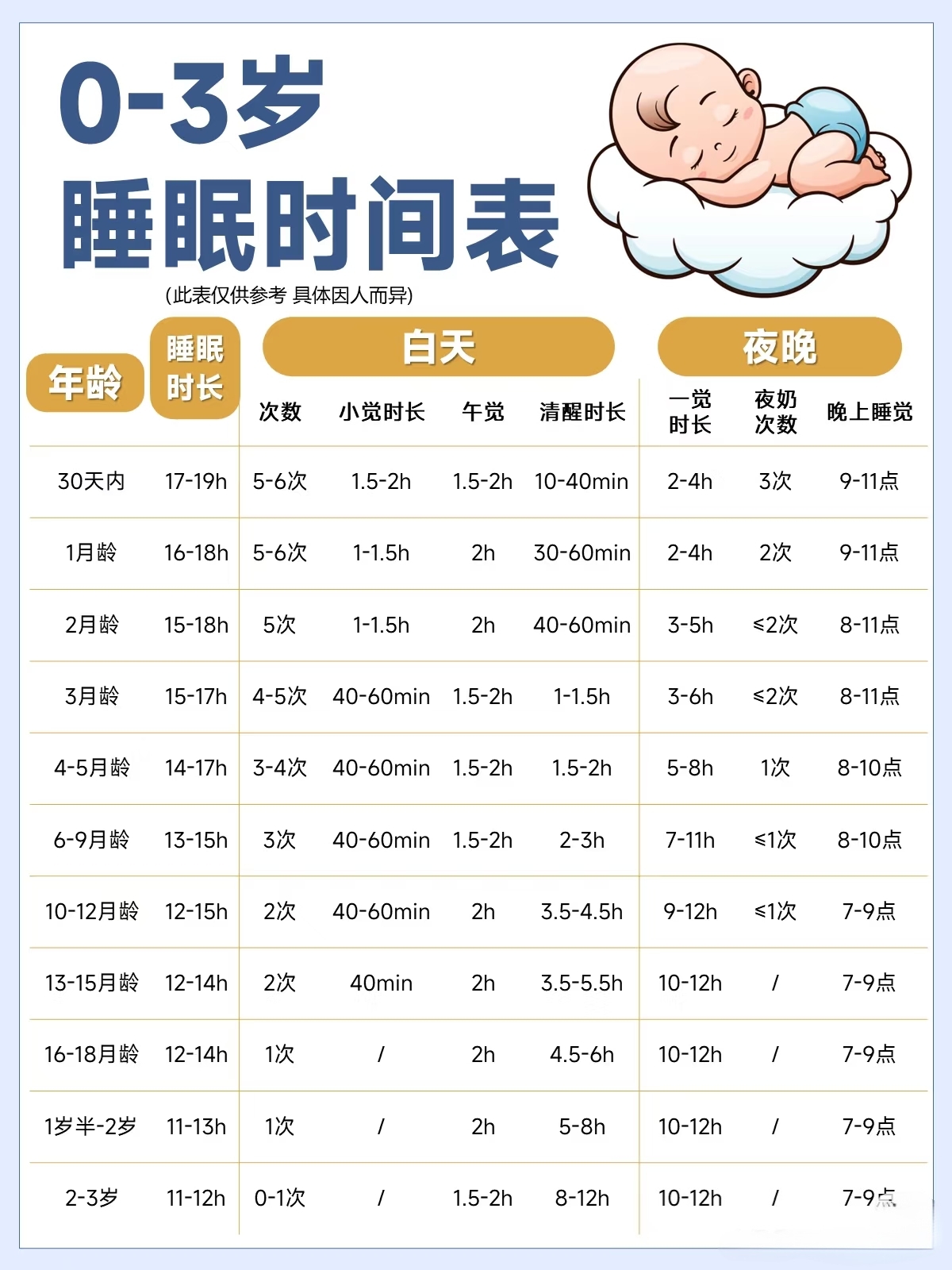 0-3岁宝宝睡眠时间表参考