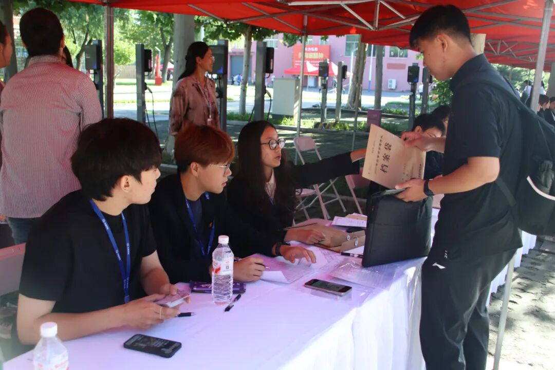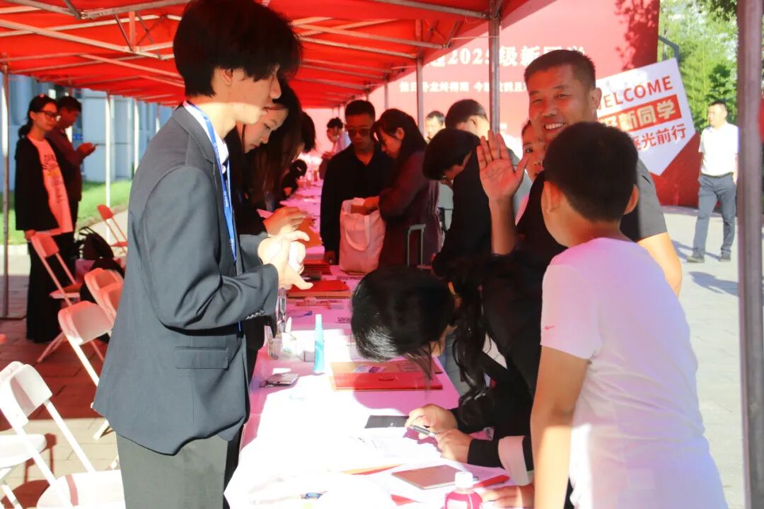确保学子们住得舒心、安心在宿舍里学院领导与新生家长亲切交谈问候旅途奔波,请家长放心托付