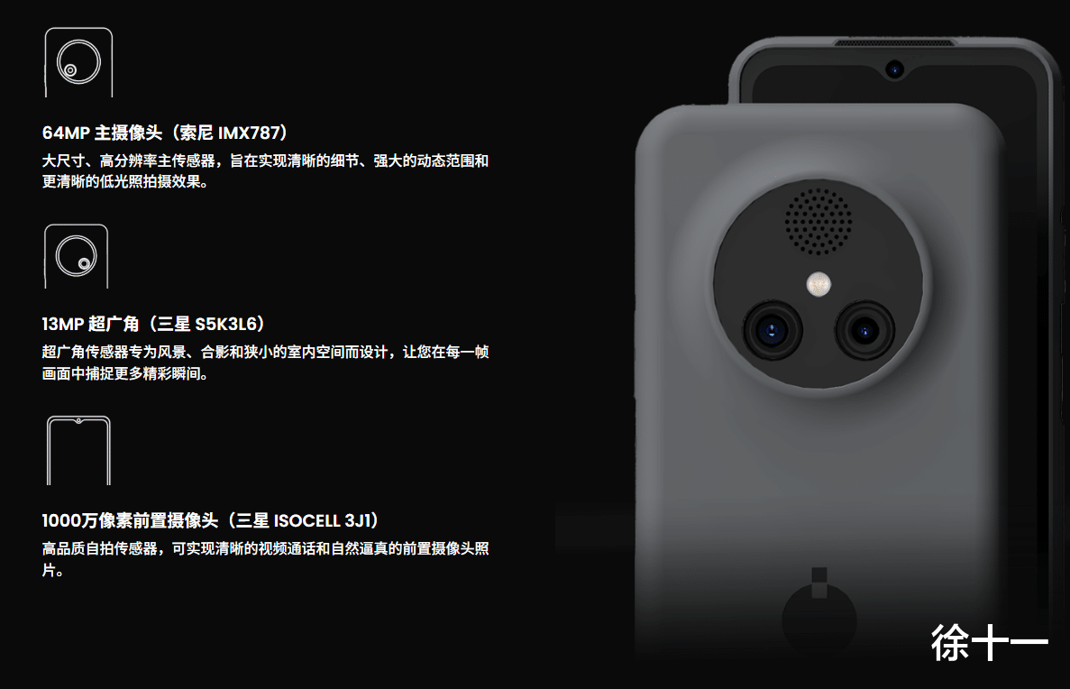 相机采用索尼的IMX787,6400万像素和1300万的超广角组合;前置就只有1000万像素了。