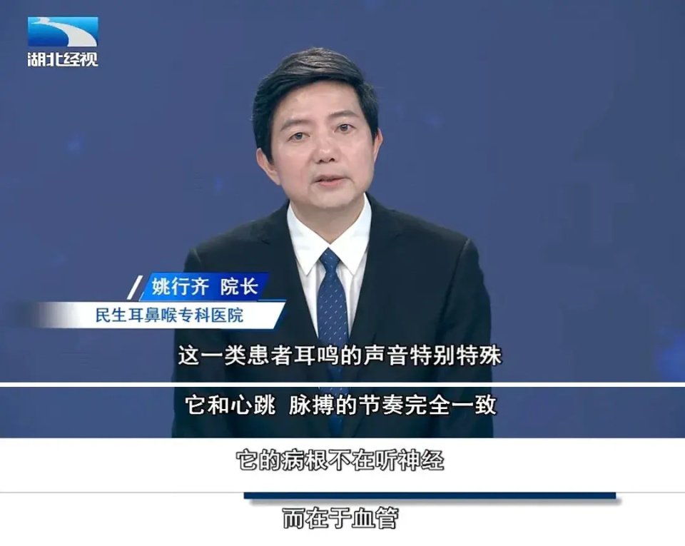 近日,武汉民生耳鼻喉专科医院院长姚行齐教授受邀做客湖北电视台经视频道《听力健康说》耳聋耳鸣专题节目,在节目中讲解了这种特殊的“心跳耳鸣”——搏动性耳鸣。