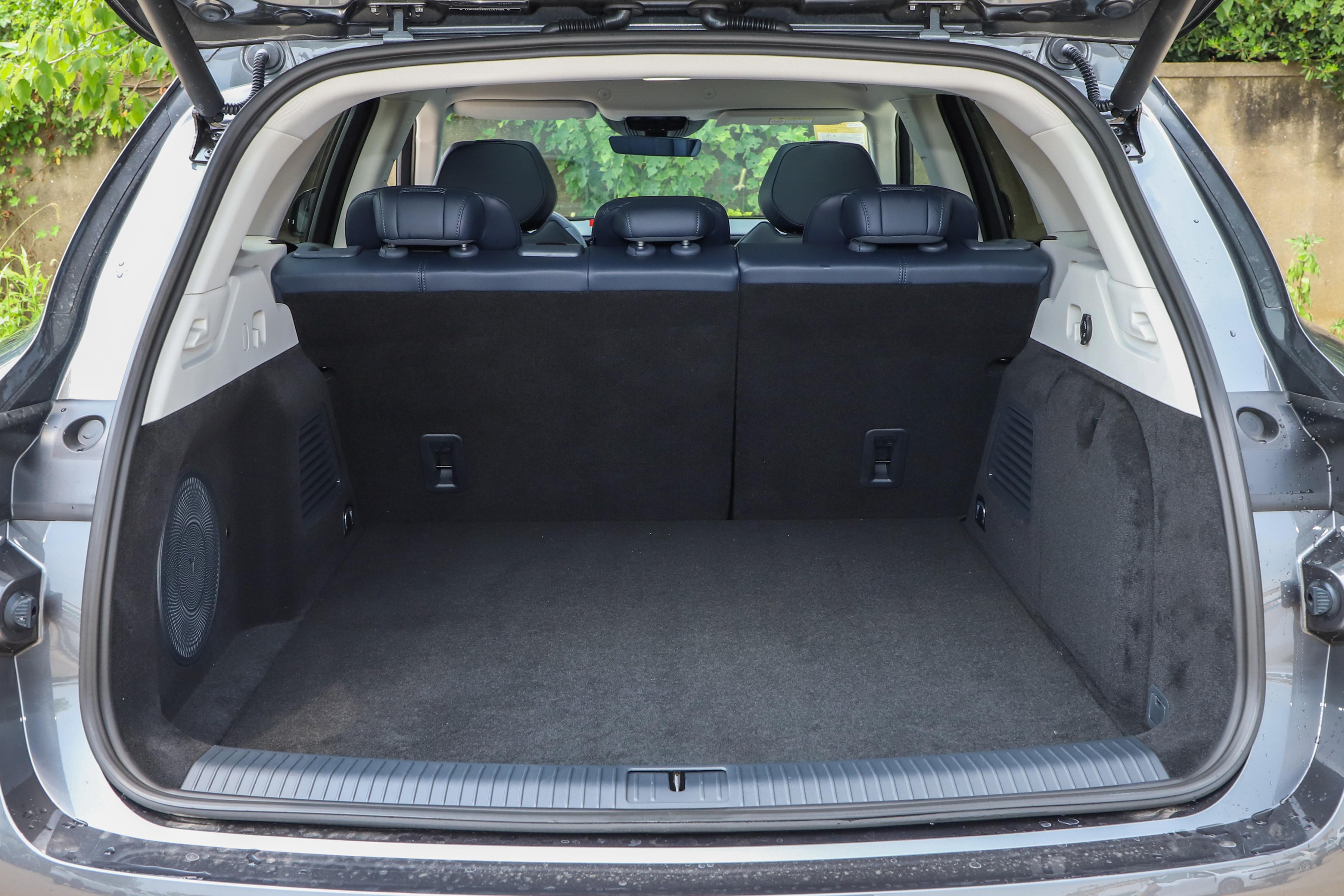 储物能力方面,岚图FREE+的后备箱常规容积为590升,放倒后排座椅后可扩展至1820升,装载能力表现优异。我们实际测试了一下,放入两个28寸大箱子和一个20寸登机箱后,旁边仍能容纳露营装备等零碎物品,完全能满足全家短途出游的储物需求。但也存在两处有待优化的地方:一是地台高度较高,由于下方布置了电池组,相比传统燃油车高出约12厘米,搬运重物时会略显费力;二是未配备感应尾门,双手持物时需要先放下物品才能手动开启,便利性稍打折扣。车内的小储物空间则十分丰富,全车共有18个储物格,门板储物槽、中控台下方可容纳10英寸平板的掏空设计、后排扶手杯架及隐藏式储物盒等,布局合理使用顺手,能有效避免车内物品杂乱堆放。