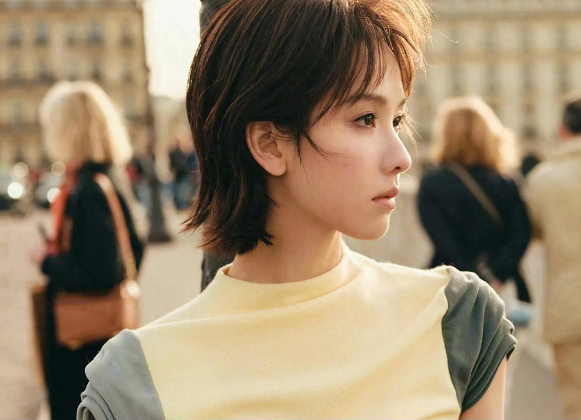 陈都灵此次的短发造型,由知名造型师唐毅主导设计,灵感源自法国影星苏菲·玛索年轻时期的经典风格。利落的线条完美凸显了她清冷的骨相与立体五官,形成了“少年感与法式浪漫”的独特融合。在街头光影中,她身着超季设计的卡其色长风衣,红蓝复古撞色内搭呼应品牌解构主义基因,搭配直角肩线与舒展身姿,诠释了当下最流行的“松弛感美学”。网友评价其“从清冷小白花蜕变为时尚狠人”,展现出“可盐可甜的多面可塑性”。