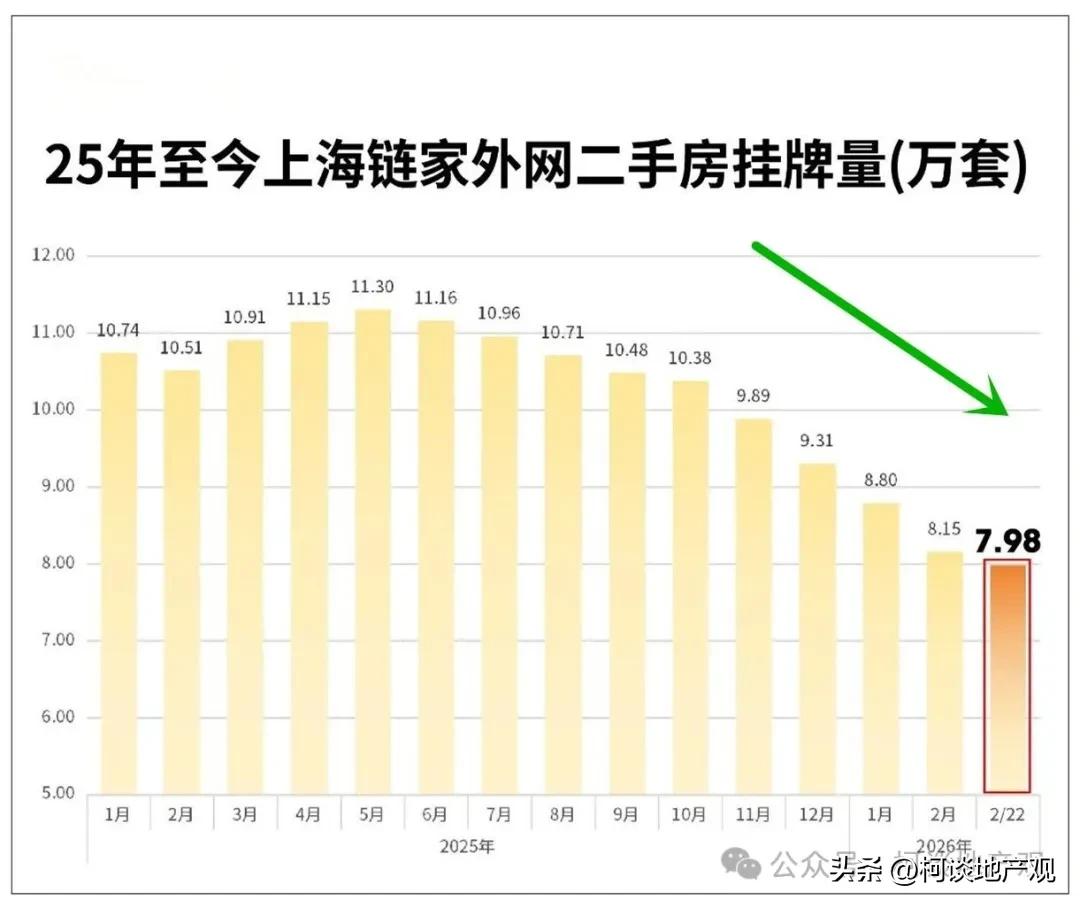 从去年11月开始,上海二手房成交量连续三个月超过2.2万套,挂牌量直线下滑,房价初现止跌反弹: