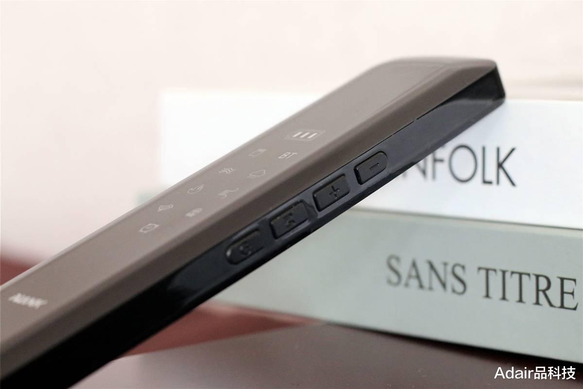 Z2枕中宝左边实体操作按键:负责音量调节、多功能M键和开关机键。右侧则是TF卡槽、TypeC充电口和工作指示灯。整个产品显示亮度控制合理,晚上使用没有光污染。实体按键方便盲操。