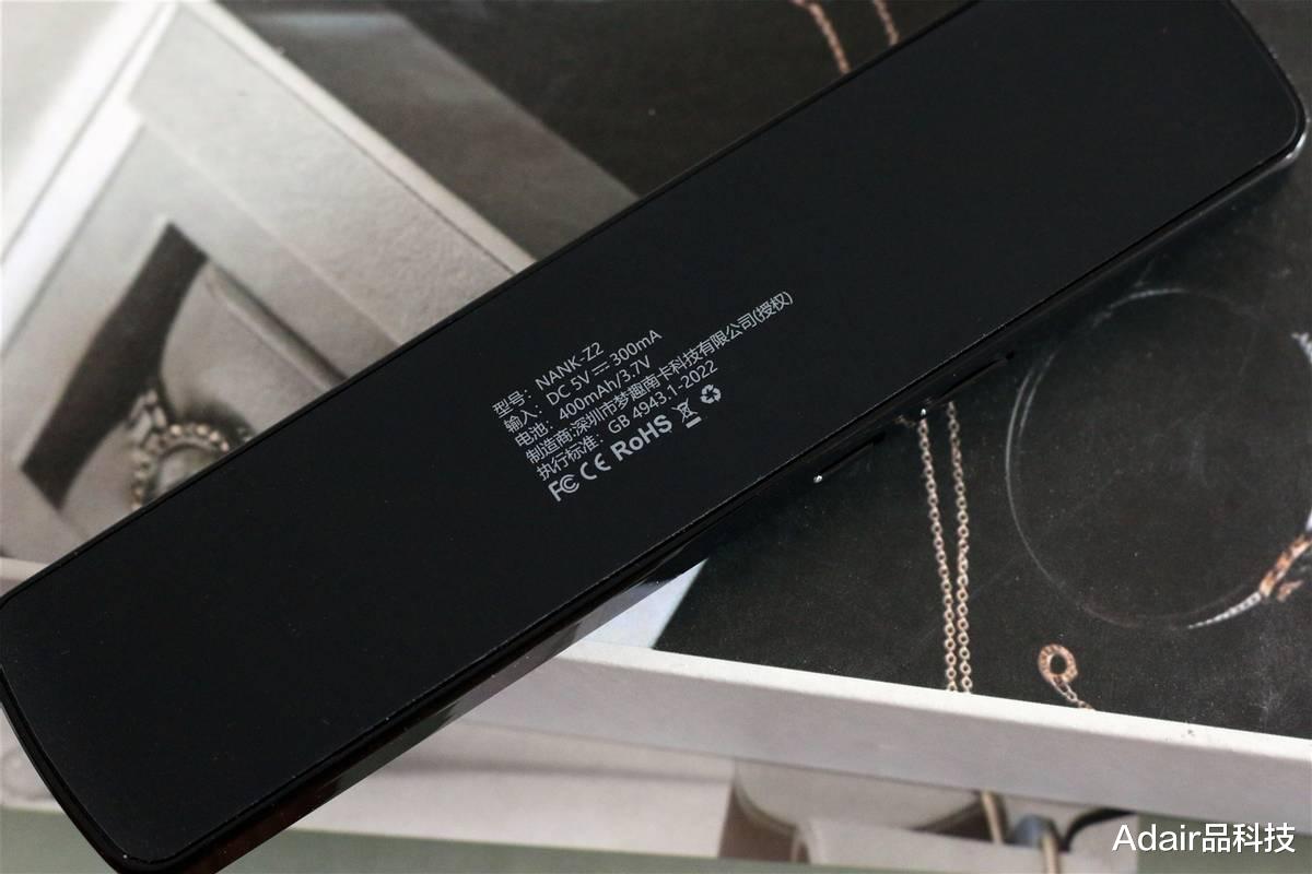 南卡Z2枕中宝设计轻巧,尺寸为155mm*36mm*14mm,重约54g,不论是居家使用还是外出携带,都非常方便。整机圆润,黑色亮面有质感。