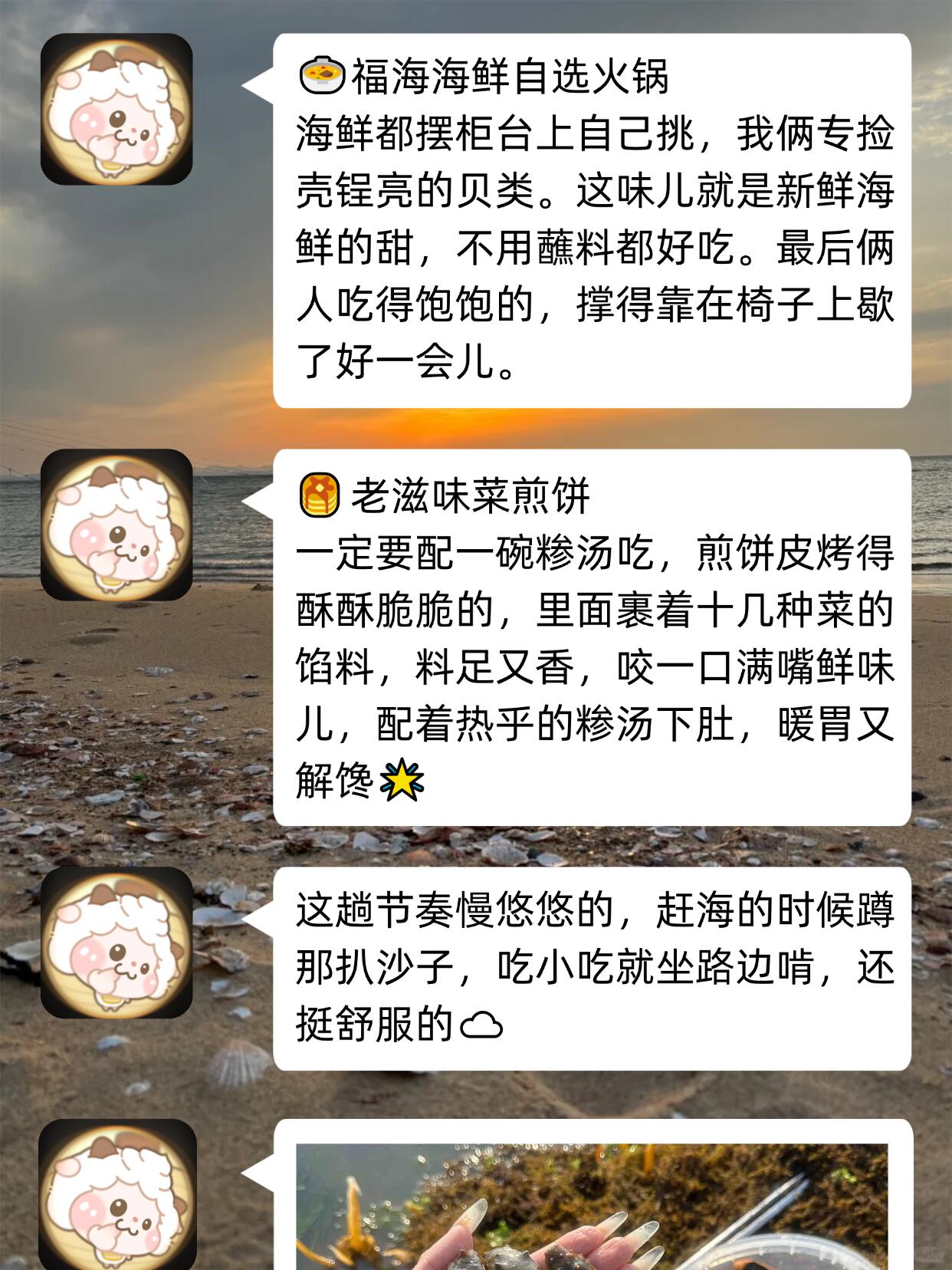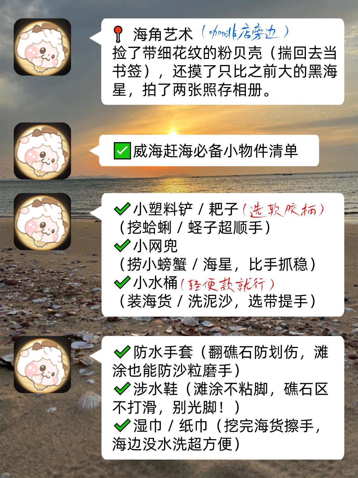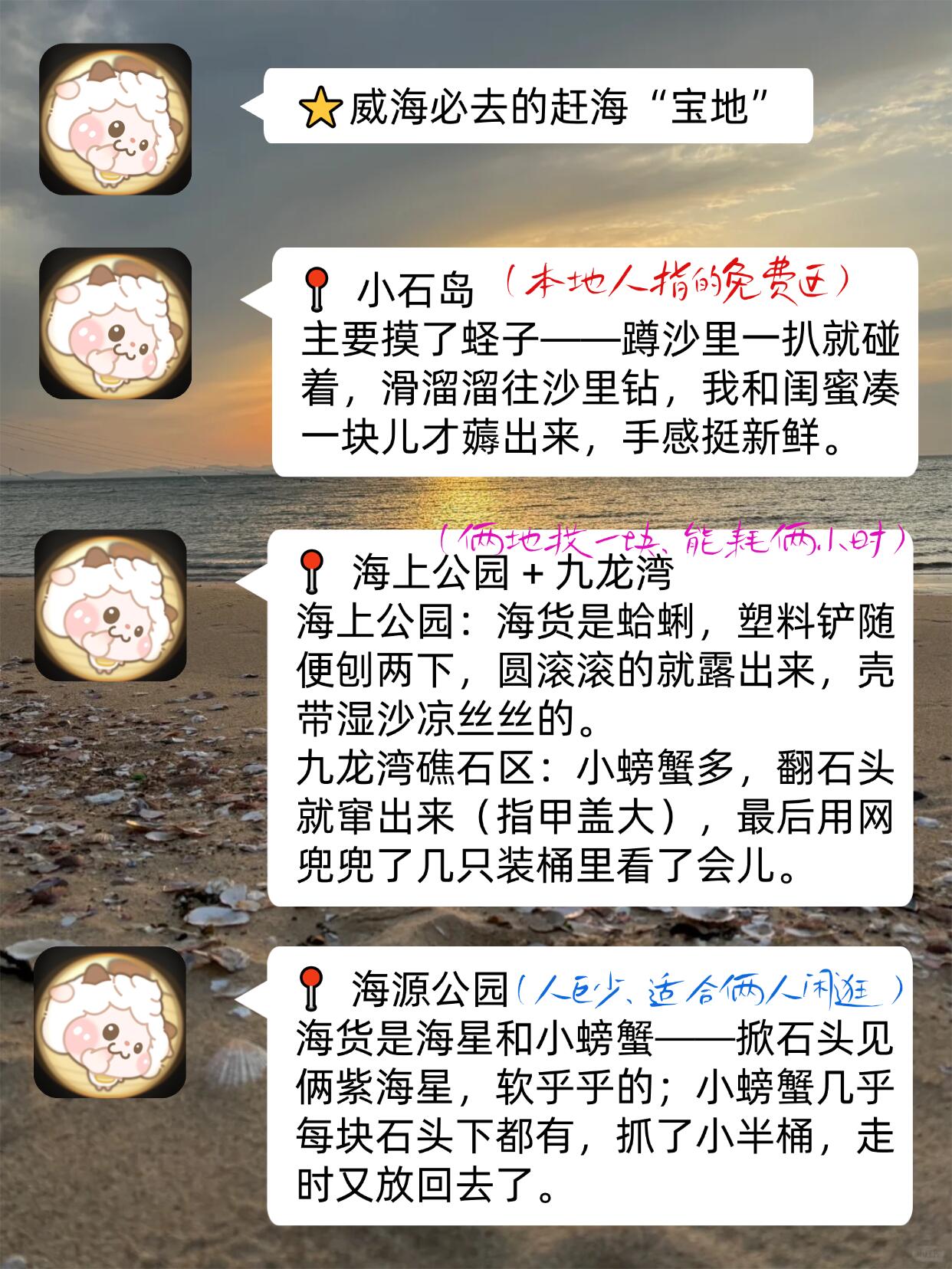 前阵我和闺蜜去威海玩,顺道赶了回海🌊——我俩也不算头回见海,但赶海是真没试过,全程慢悠悠晃着,还挺有意思的,去玩的姐妹可以直接抄作业✅