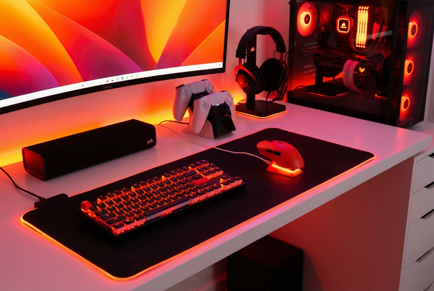 200价位能有这样的表现确实非常有诚意,喜欢橙黑风格桌搭的玩家可以试试这套,会有不少惊喜。更重要的是,它在多设备协同上的巧思让桌搭生态更有可玩性。除了鼠标与底座的高度适配无缝衔接之外,未来雷柏A hub还会将键盘、耳机等外设统一接入灯光同步方案,整套桌面色彩随游戏场景或音乐节拍切换,沉浸感瞬间跃升。