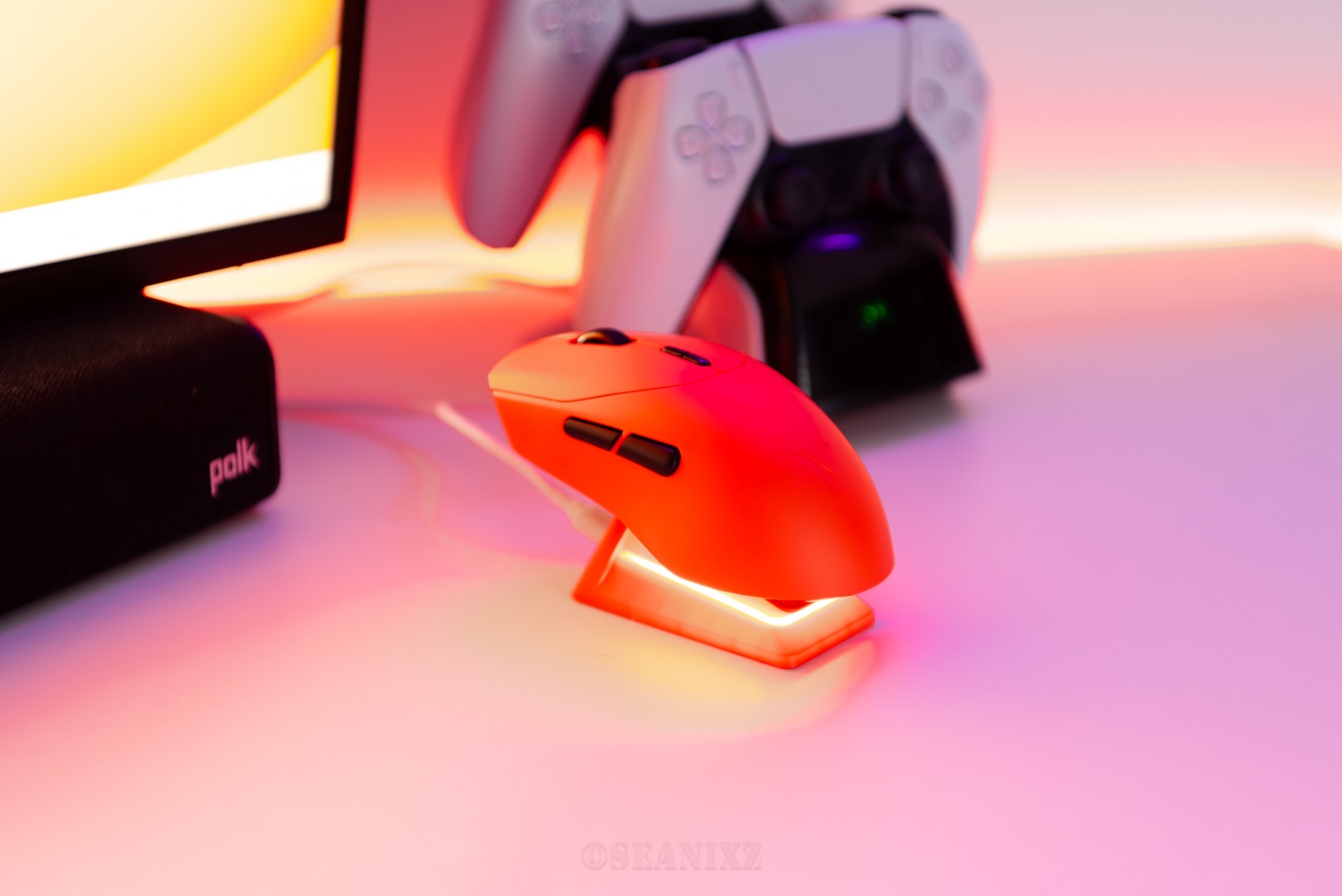 P5 PLUS 充电底座是前作的升级款,个人感觉最大的提升在支持软件设置灯效,可以更好的额营造氛围感了,也是高端外设的标配。