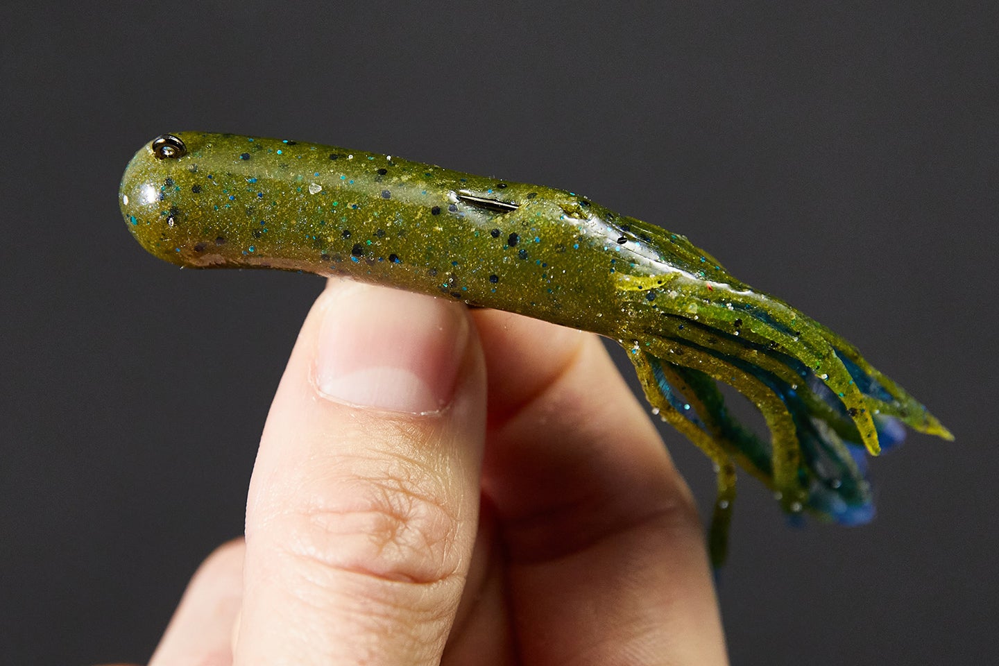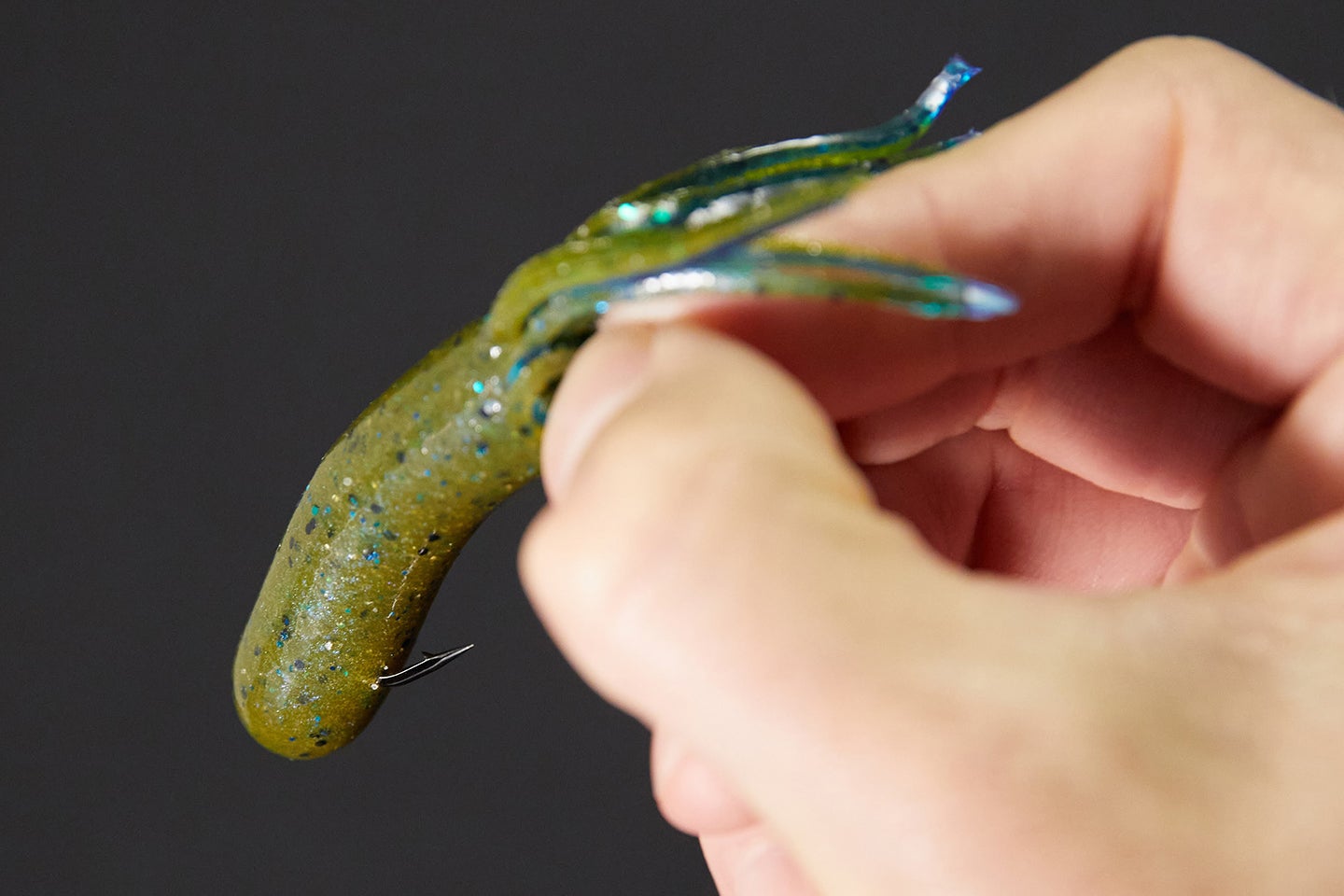 想玩转这个钓组,你只需要准备好你最顺手的3到4.5英寸的管虫,以及一款带配重的专用铅头钩。