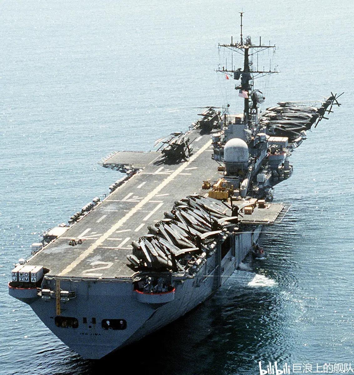为何说四川舰具有划时代意义呢?先来讲讲古。两栖攻击舰这一舰艇类型,是二战以后由美国开始兴起的,由于直升机的投入战场,两栖登陆模式也因此改变,三维化的战场催生出由海到陆的新模式,两栖攻击舰由此应运而生,美军先后建造了硫磺岛级和塔拉瓦级两栖攻击舰,硫磺岛级由于设计年代较为久远,因此没有设置坞舱,服役时间也较为短暂,反而后续利用其船体建造的“蓝岭”级两栖指挥舰倒是一直服役到现在还没退役。真正代表着两栖攻击舰成为两栖作战中坚力量的是“塔拉瓦”级,这型两栖攻击舰排水量不到4万吨,可搭载AV-8B垂直起降战斗机、CH-53、CH-46、AH-1W、UH-1N等多种直升机,同时具备坞舱,具有搭载机械化登陆艇和LCAC的能力。在建造5艘塔拉瓦级之后,美军又开始建造更为先进的“黄蜂”级两栖攻击机,在塔拉瓦的基础上,黄蜂级有了更大的排水量和更大的坞舱,同时在后续的改进中,更是具备了起降V-22偏转旋翼机和F-35B垂直短距起降战机的能力,当然,更为让我们军迷熟悉的,就是被大火烧毁的“好人理查德”号。在黄蜂级之后,美军又开始建造“美国”级两栖攻击舰,有意思的是其取消了坞舱,后来发现不对劲,又重新加入了坞舱,总之是很折腾,当然,在四川舰服役之前,不论是黄蜂级还是美国级,依然是这个世界上最先进的两栖攻击舰。