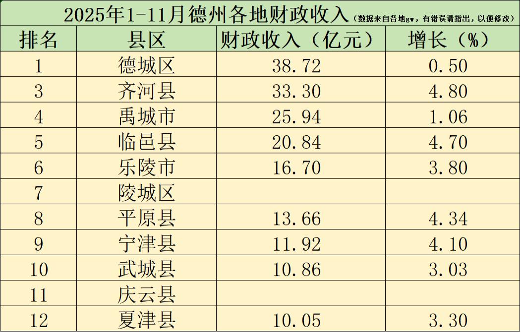 宁津县1-11月财政收入为11.92亿,增长4.10%。宁津的财政增长同样出色,总量接近12亿。