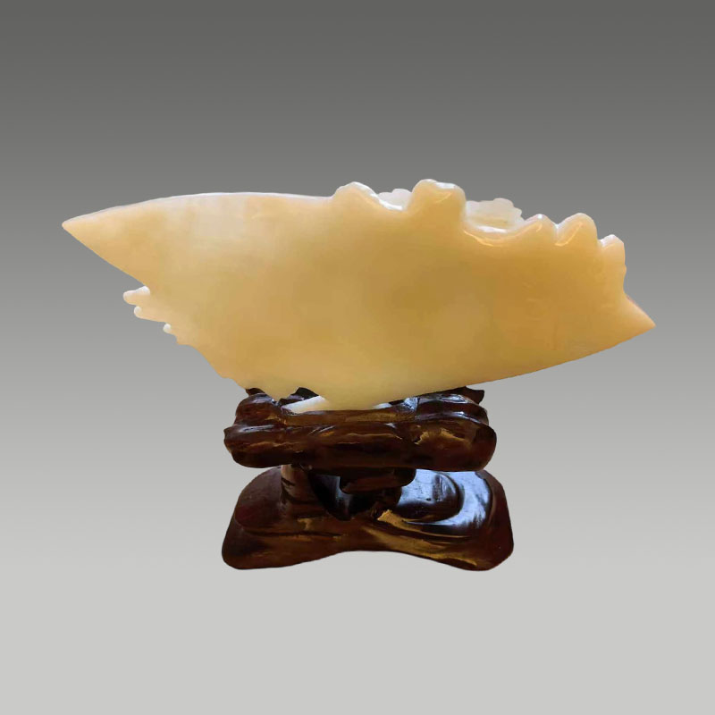 这块羊脂白玉摆件,玉质莹润如凝脂,雕工精巧灵动,似凝霜一叶,尽显东方玉石的温润雅致与匠心巧思之美