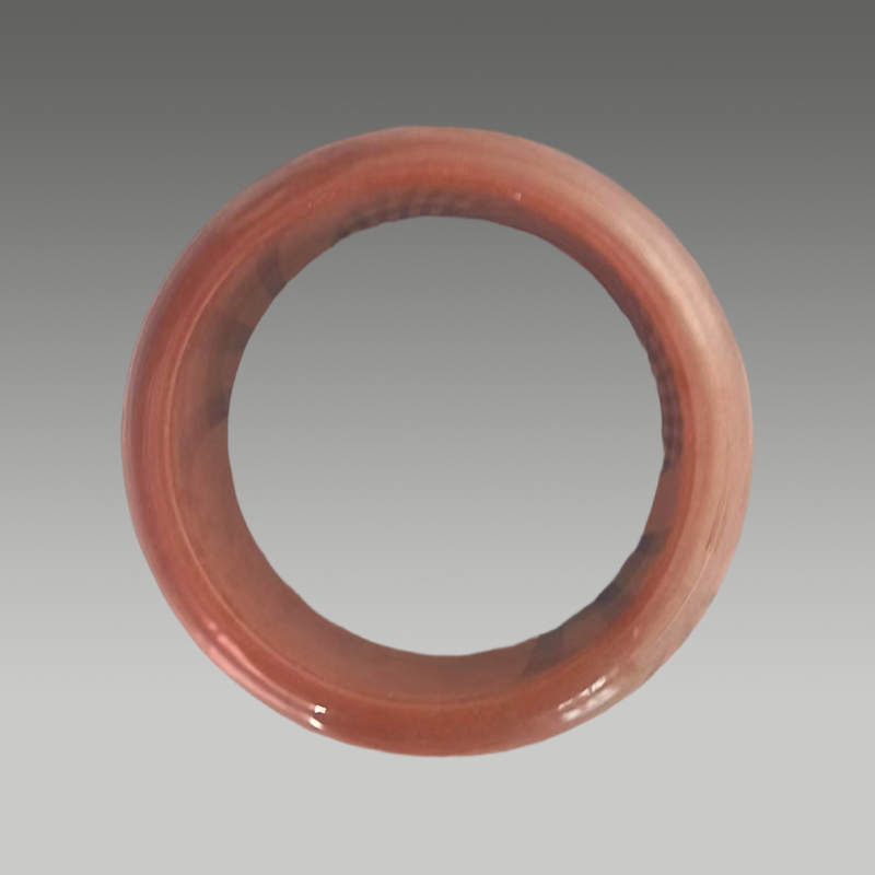 这只手镯色泽温润如浅绯凝脂,质地细腻通透,光泽柔和内敛,佩戴于腕间尽显温婉雅致