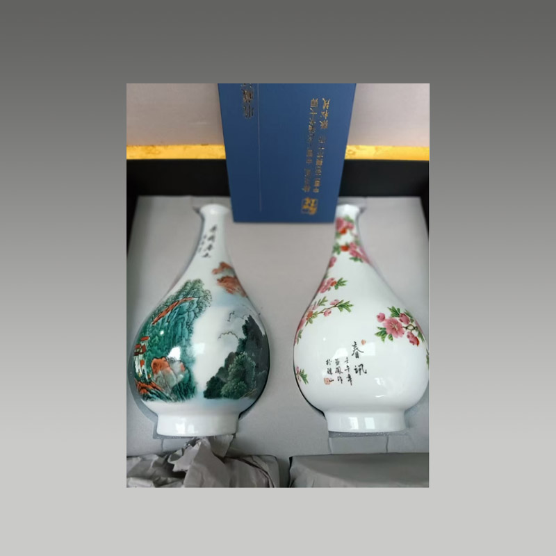 这对景泰蓝喜凤瓶,是张同禄大师的匠心之作。铜胎掐丝,珐琅流光,双凤绕牡丹,尽显东方神韵