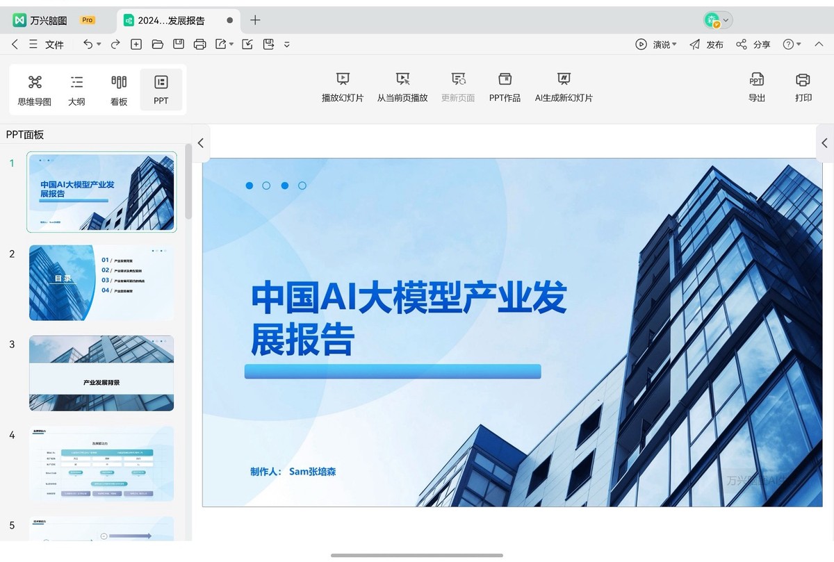 更让我觉得实用的是,做完的脑图还可以一键转换成PPT演示稿。这意味着从灵光一闪的思考到有模有样的回报方案,就可以在手机端直接闭环了,可太方便了。