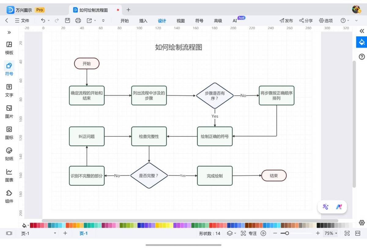 还有一个让我觉得鸿蒙三折叠配得上“口袋工作站”称呼的应用,是鸿蒙版万兴图示。像我这种非技术出身的人,跟技术同事沟通偶尔也需要画个简单的系统流程图或是网络拓扑图。在普通手机上这几乎是个无法完成的任务,但在三折叠屏上轻松拖拽图形库,就画出了一个简单的项目流程图。丰富的图形库、流畅的文本编辑,让可视化沟通变得可行。
