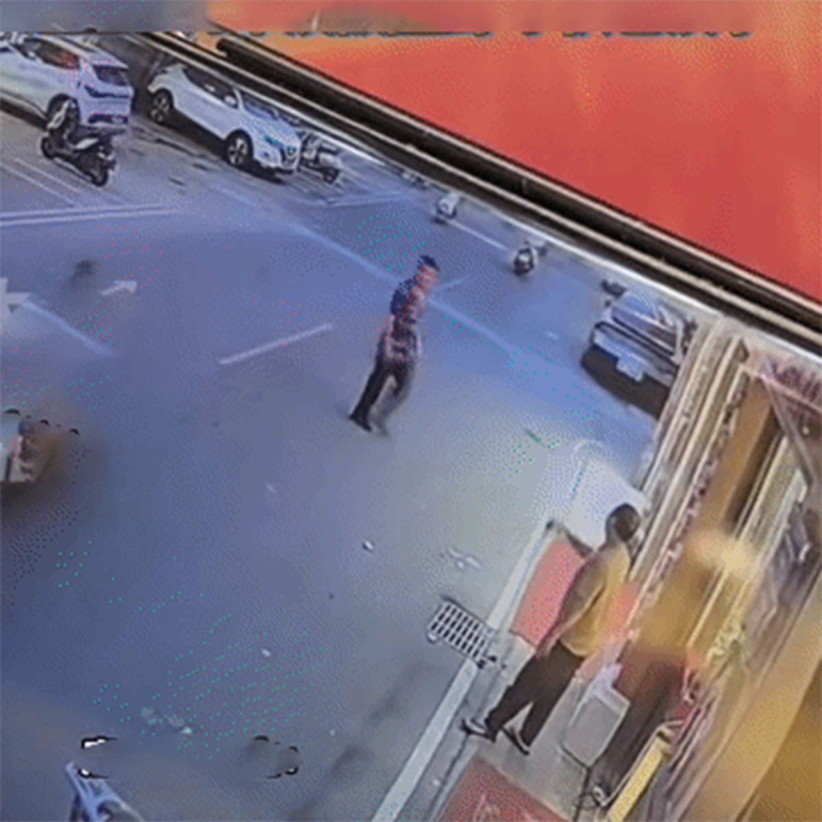 就在这千钧一发的关键时刻,令人惊叹的一幕出现了。面对飞驰而来的摩托车,大爷反应极其神速,只见他迅速扭腰,同时快步小跑,动作连贯又敏捷,瞬间就躲开了失控的摩托车,成功避开了这场可能造成严重伤害的意外。