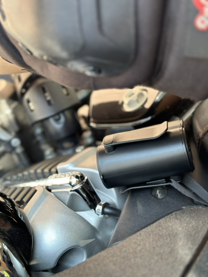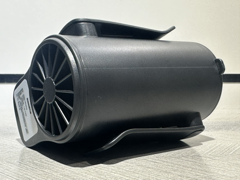 风扇整体是哑光机身设计,和车辆漆水无缝的融合到一起。Type-C充电口与骑行灯/码表通用,最惊喜的是随机附赠的挂脖带,能完美兼容骑行服后背口袋、腰包甚至水袋包肩带,我为了对抗发动机高温,选择用带子直接固定到座椅上。其实将风扇横置固定在骑行裤腰部的位置时,既不会影响踩踏动作,又恰好让气流覆盖整个后背。