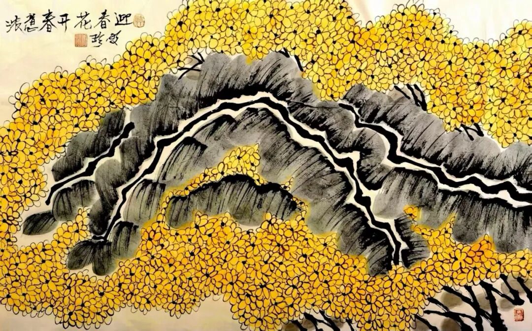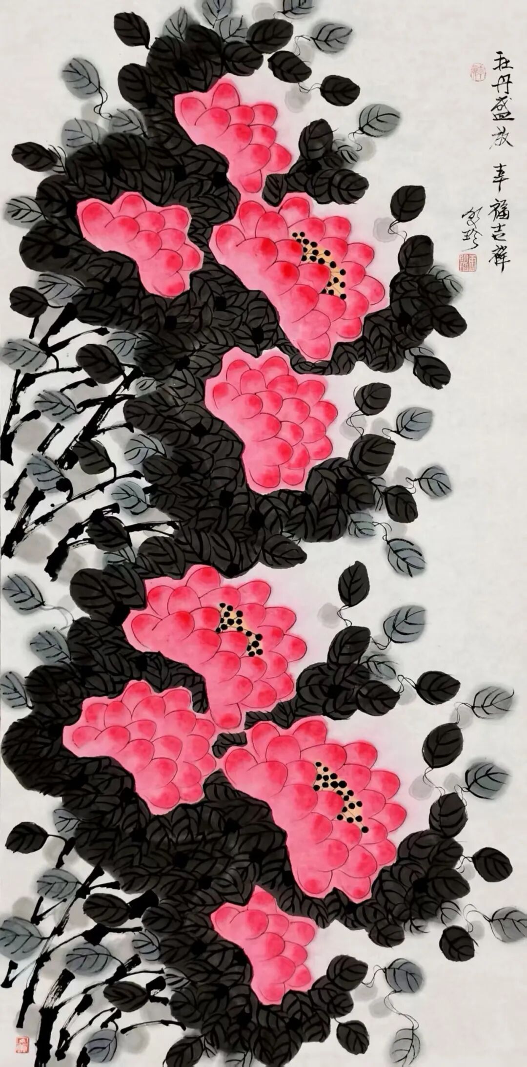 中国画《牡丹盛放 幸福吉祥》136x68cm