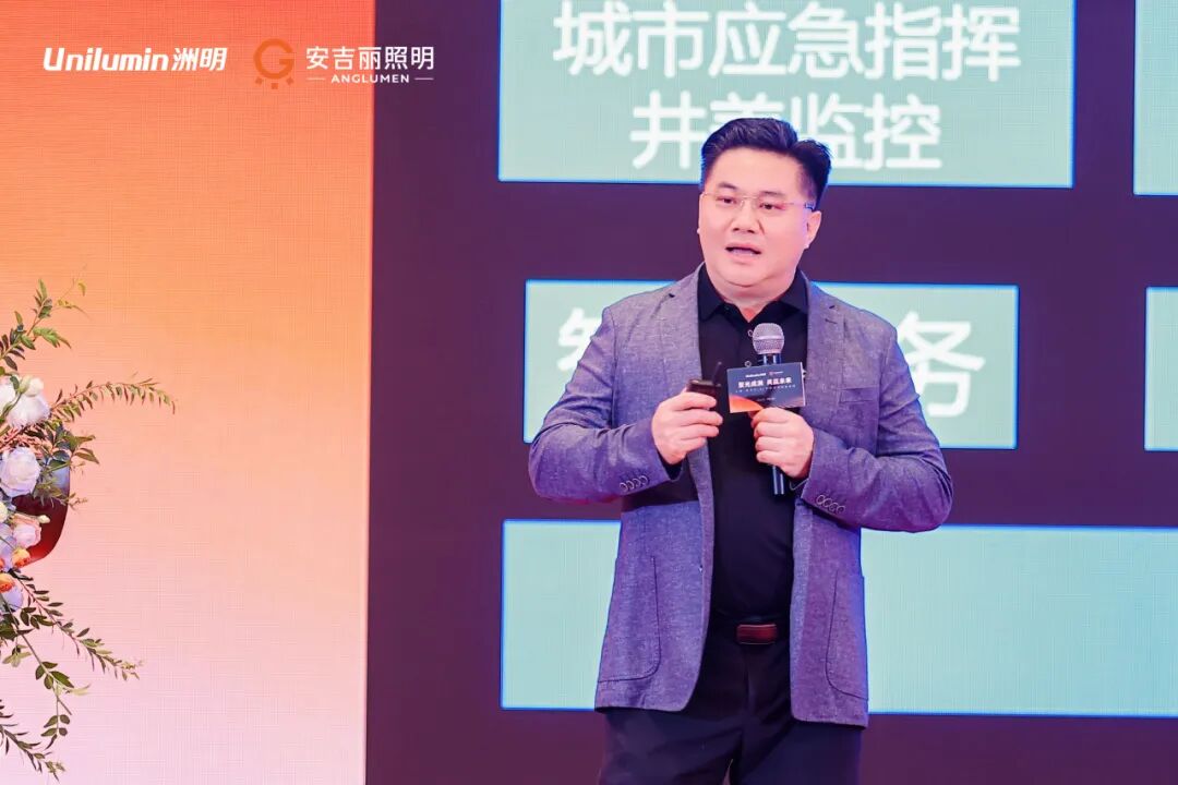 洲明集团副总裁李宇尘现场分享智慧路灯解决方案。基于鸿蒙技术架构与AI场景联动,洲明智慧路灯实现“统一管控、感知融合、数据高效回传与物联安全接入,助力城市实现数字化治理与民生服务双提升。