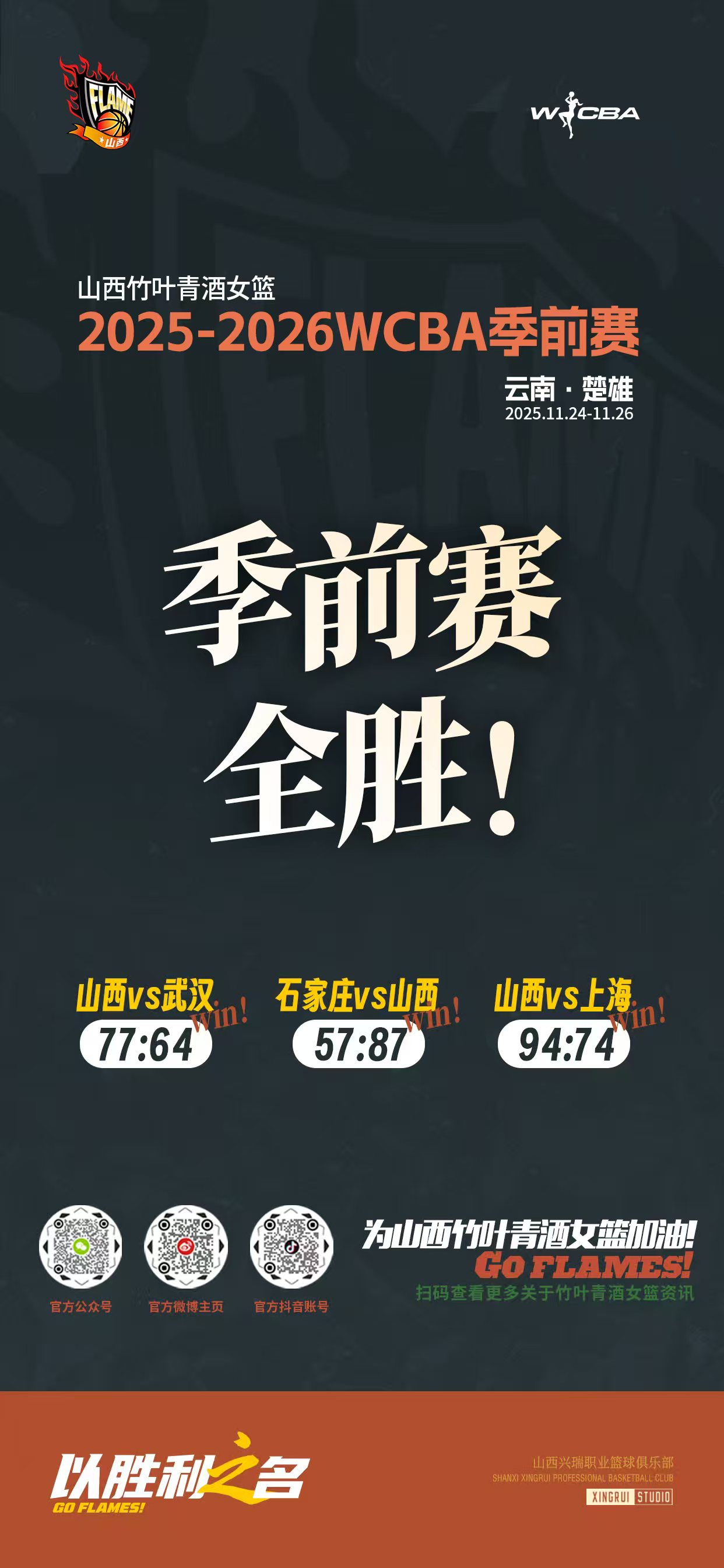 近日,在2025-2026赛季中国女子篮球联赛(WCBA)季前赛中,山西竹叶青酒女篮先后击败了武汉队、石家庄队、上海队,取得了三连胜的好成绩。
